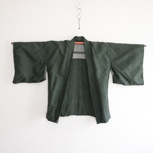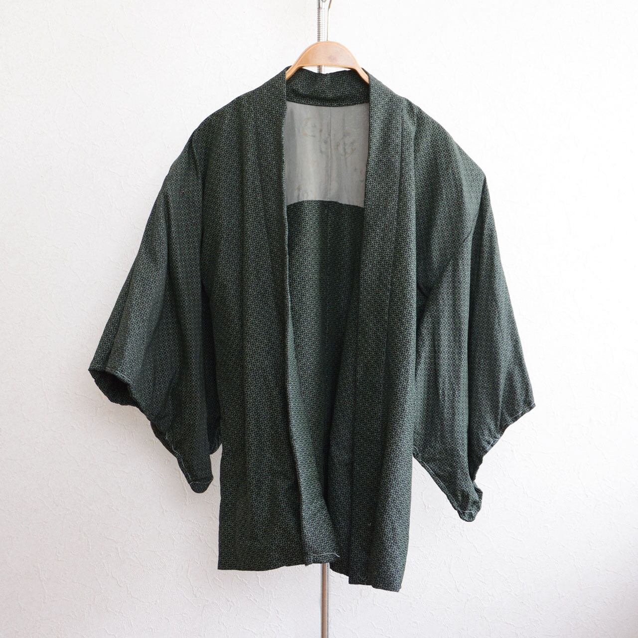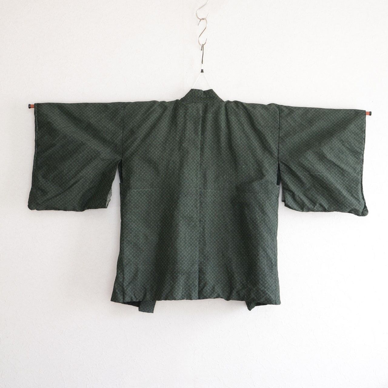 深緑と黒の小紋柄 ヴィンテージ羽織 着物 羽織紐付き