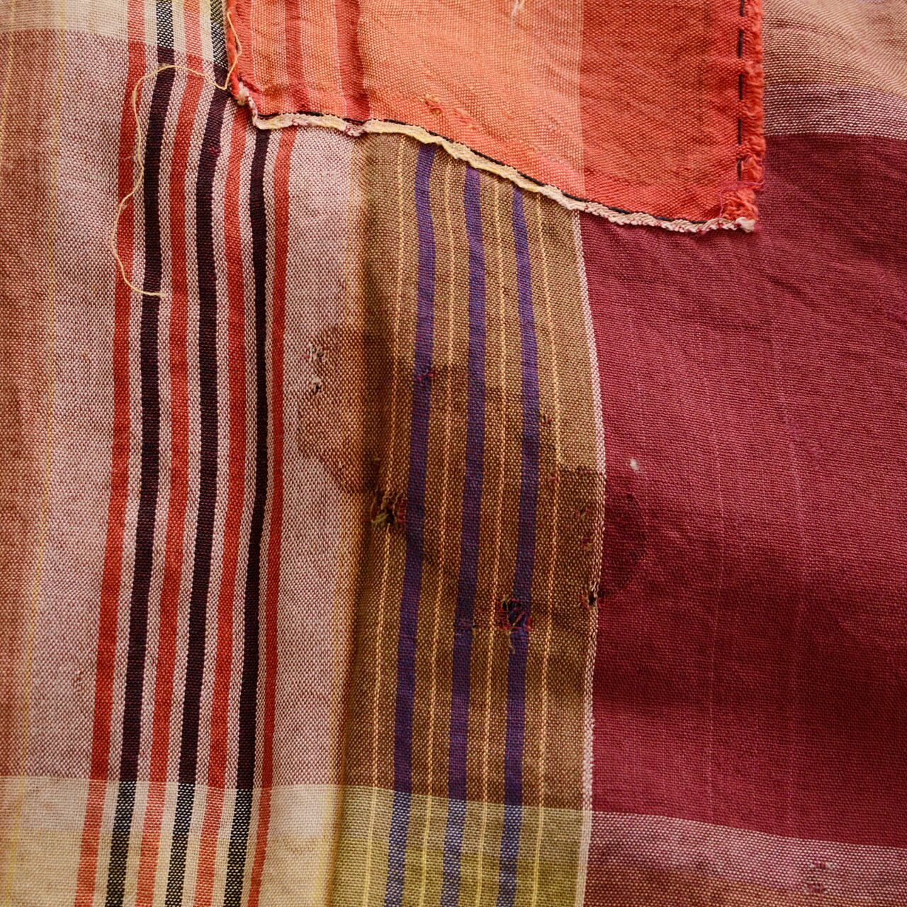 随所に見られる当て布と手縫いの補修跡は、当時の人々が布を大切に使い続けていた生活の痕跡であり、「襤褸(ぼろ)」と呼ばれる日本独自の美意識を体現しています。