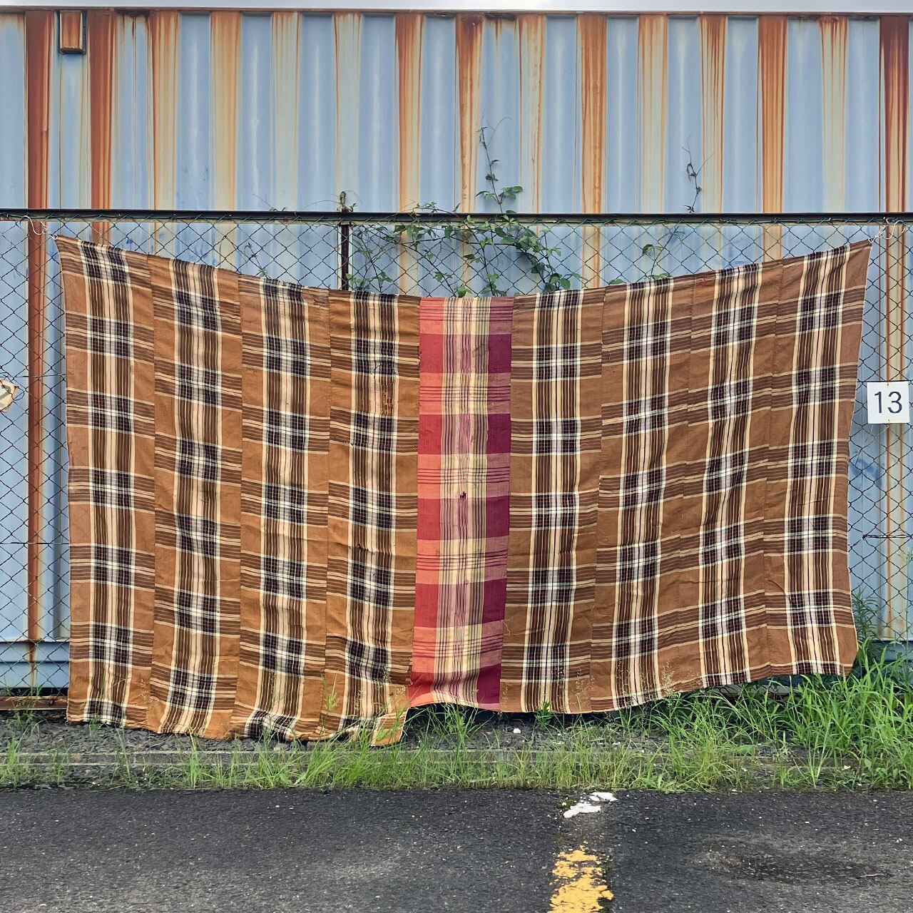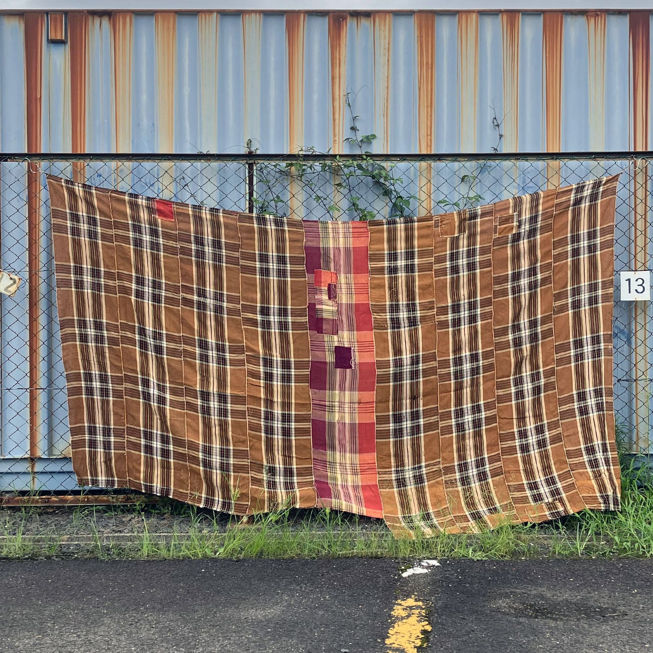 古布 木綿 襤褸 布団皮 昭和中期 格子とクレイジーパターンの大判リペア布 約289×154〜173cm ジャパンヴィンテージ