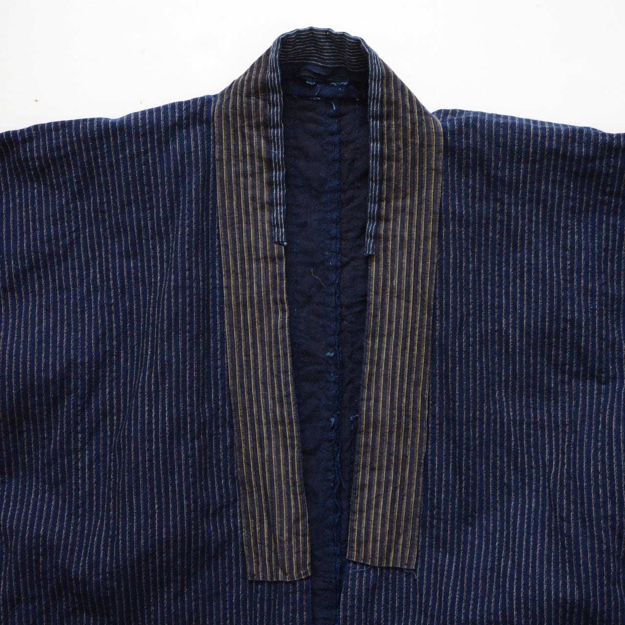 野良着 荒刺し子 藍染 縞模様 藍無地 濃紺 半袖タイプ 木綿 ジャパンヴィンテージ