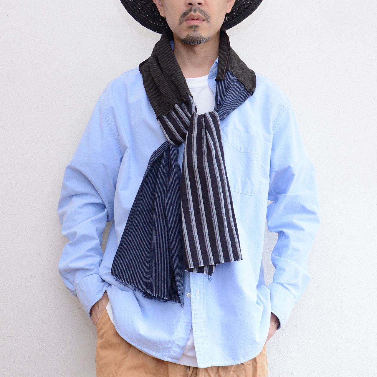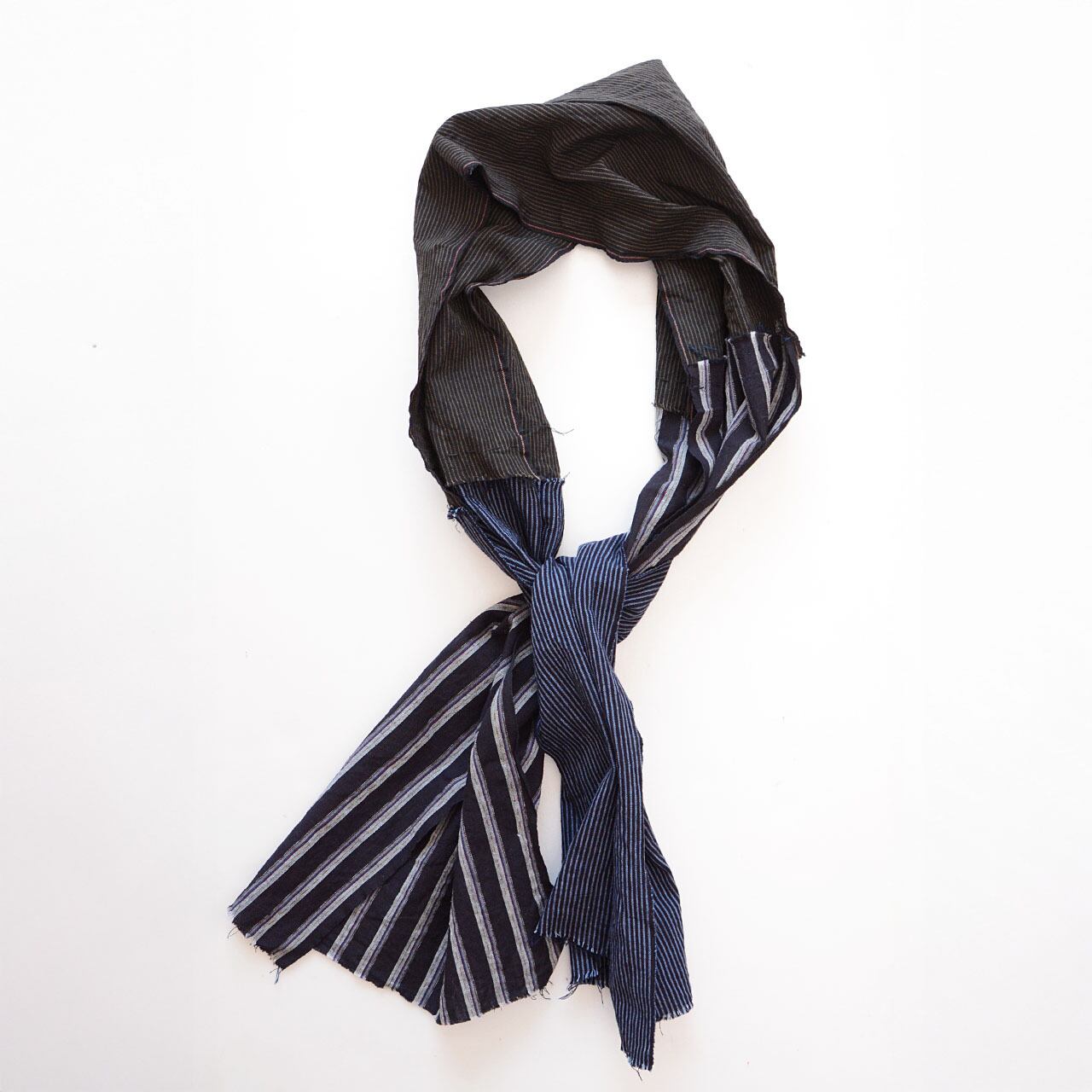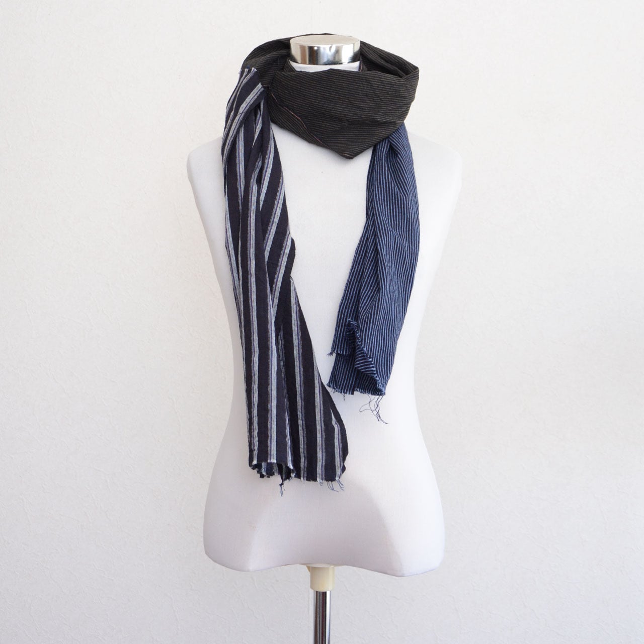 つぎはぎされた古布の木綿縞模様ストール — ハンドステッチが映えるスカーフにもインテリアにも使えるファブリック