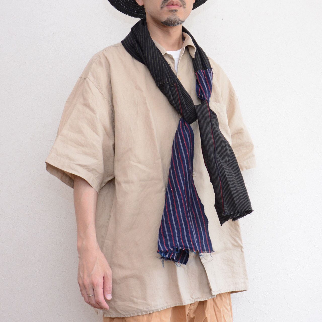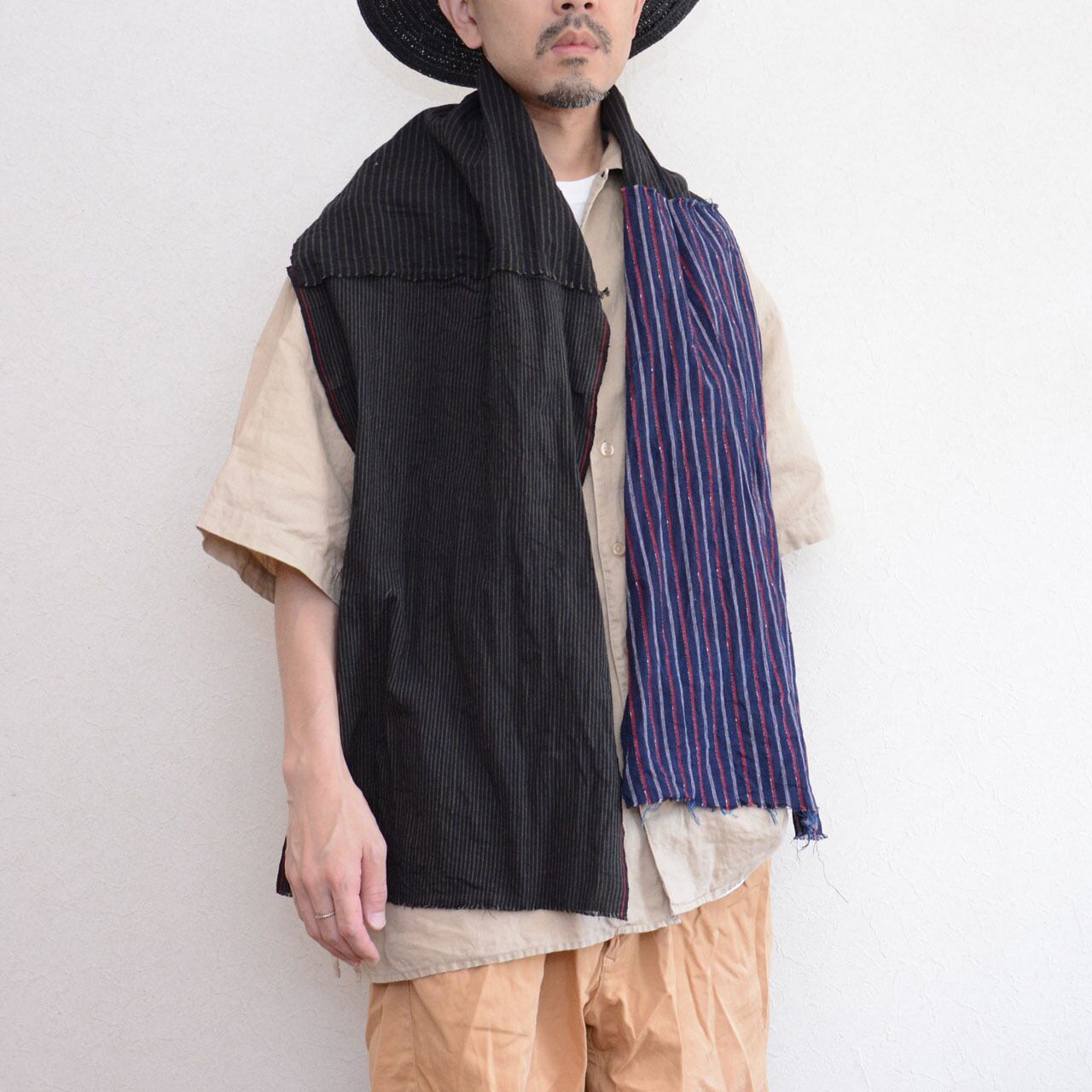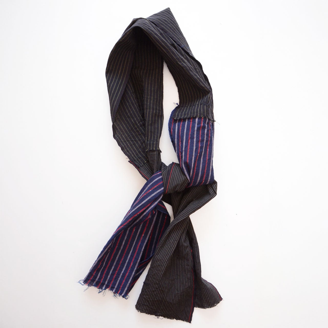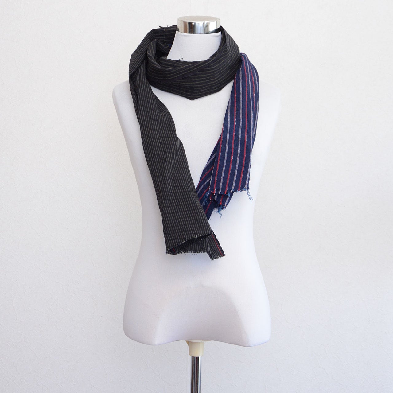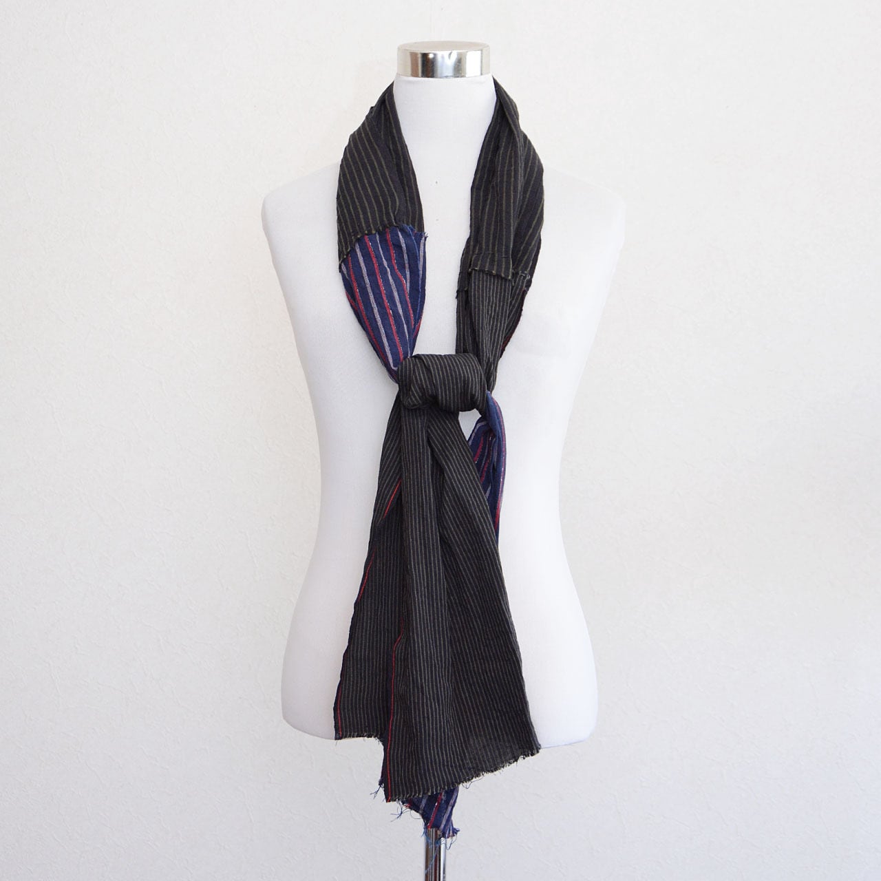 古布 木綿 ストール つぎはぎ 縞模様 — ハンドステッチが映えるスカーフにもインテリアにも使えるファブリック