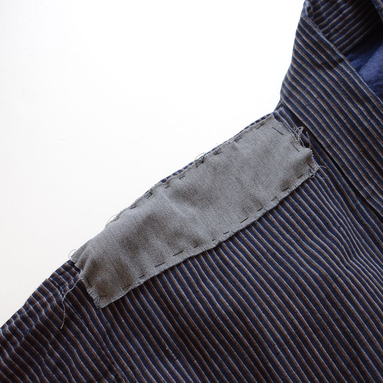 肩など、摩耗しやすい箇所には当て布で補強が施されており、現場での使用を想定した実用的な設計が光ります。