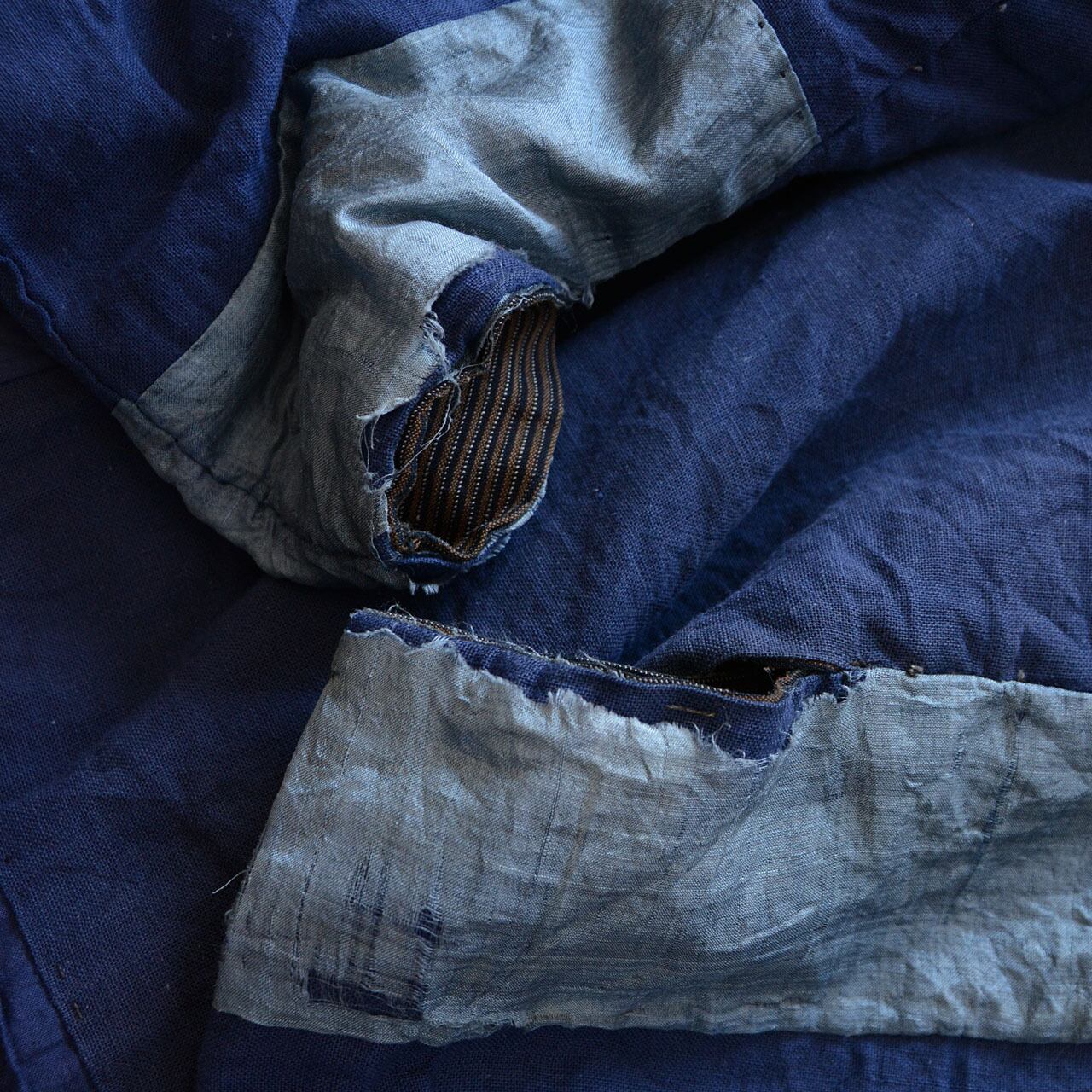 生地はしっかりとした木綿地で、藍染が美しく、素朴さの中におしゃれな風合いが漂います。