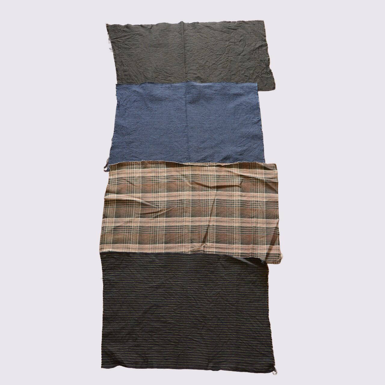 縞模様3枚と格子模様1枚の計4枚、すべて木綿素材で、素朴な風合いと温かみのある質感が魅力です。