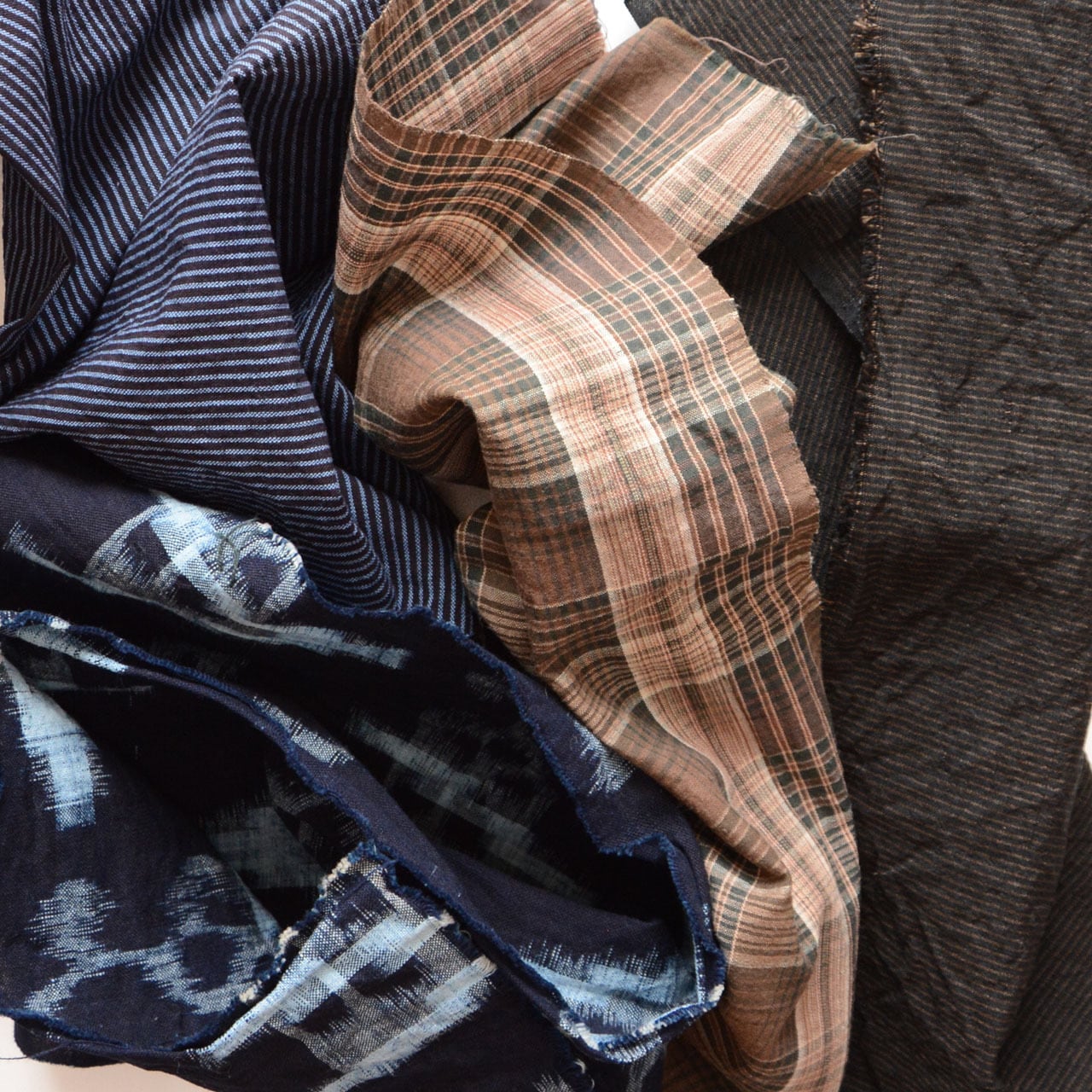 古布 はぎれセット 木綿 藍染絣 縞模様 格子模様 リメイク素材 B26