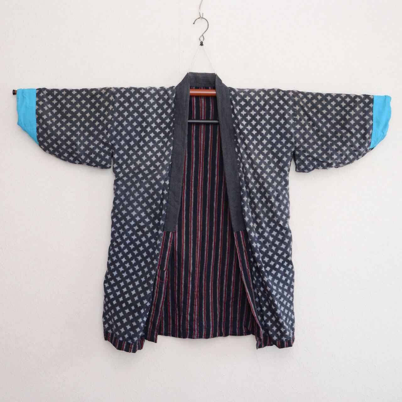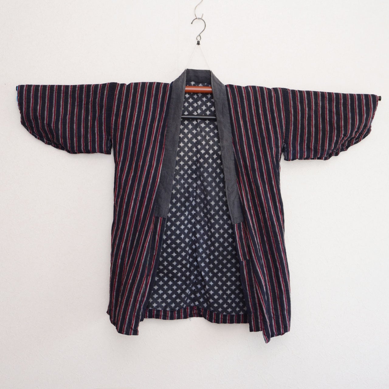 昭和中期 木綿野良着 縞模様×星型クロス裏地 ジャパンヴィンテージ ワークウェア