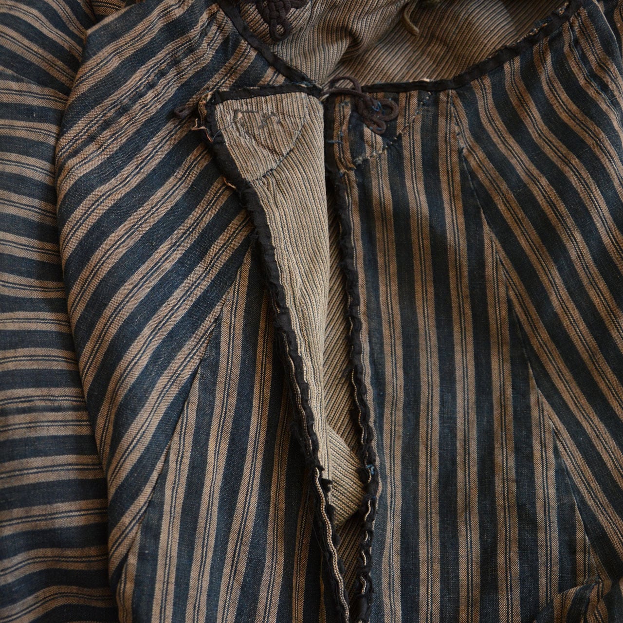 古布ならではの柔らかさと手仕事の風合い、藍染の色褪せない深みが、時代を超えて現代の装いに存在感を与えます。