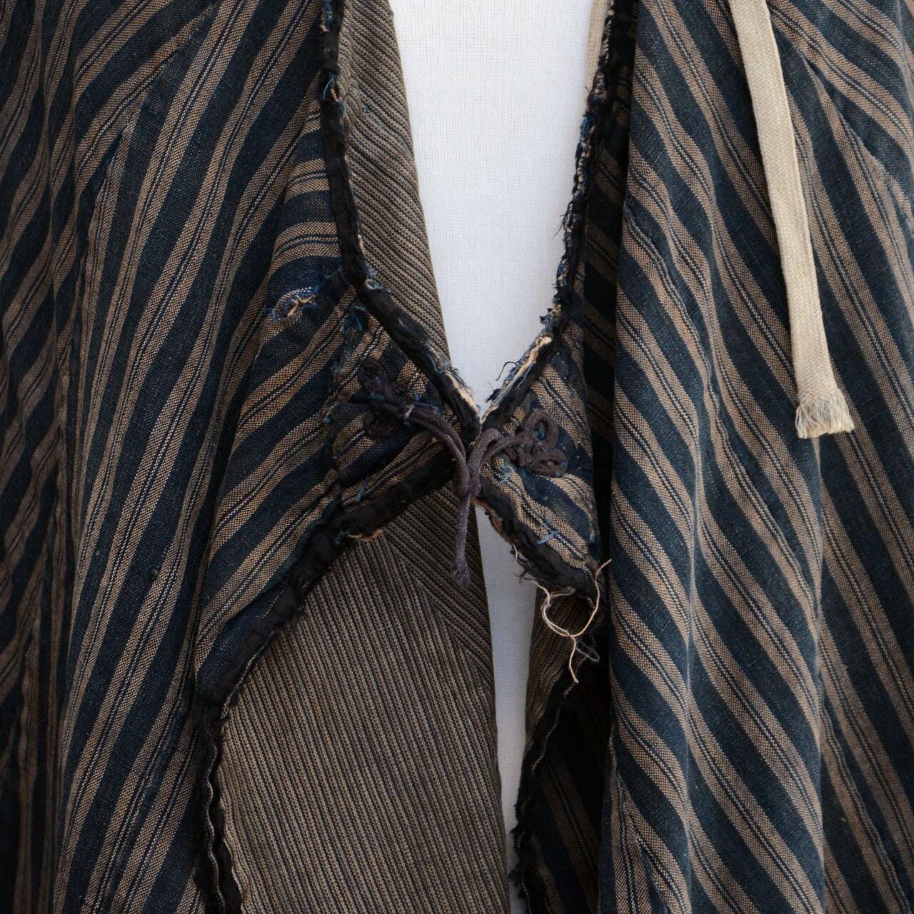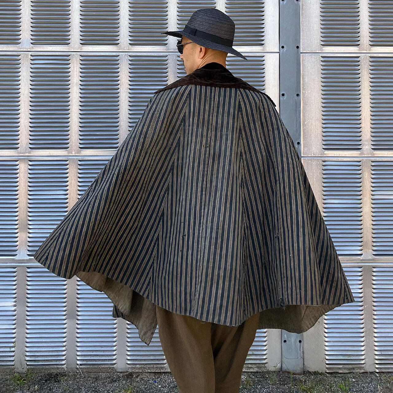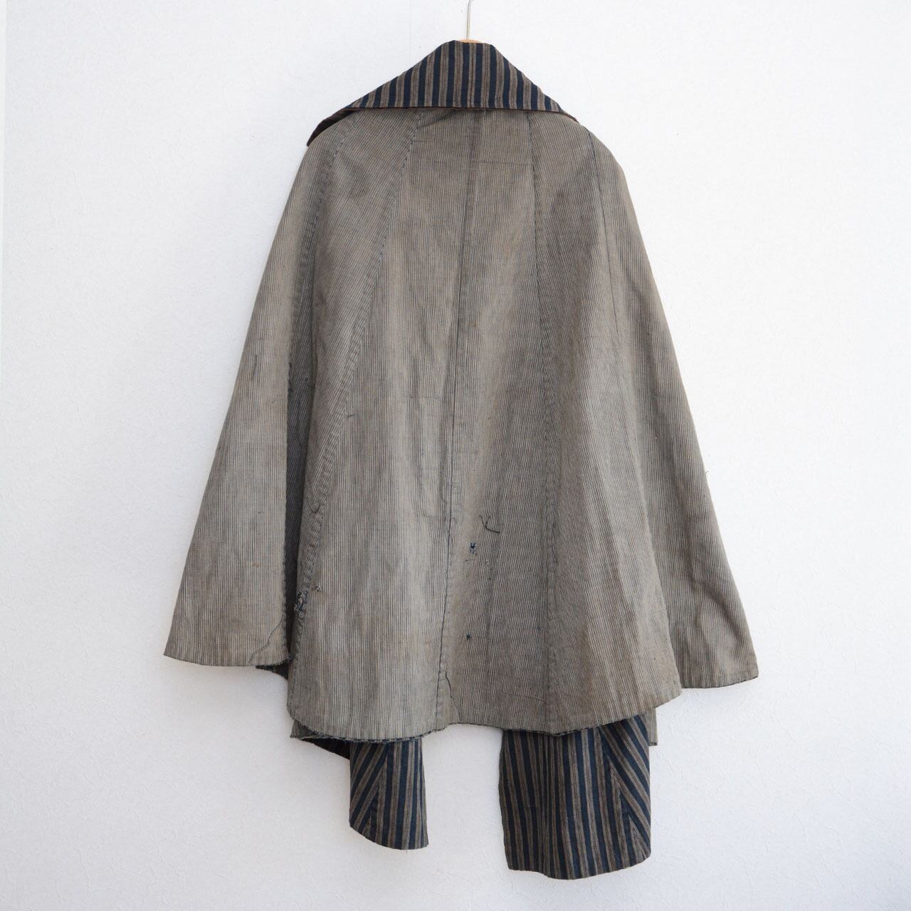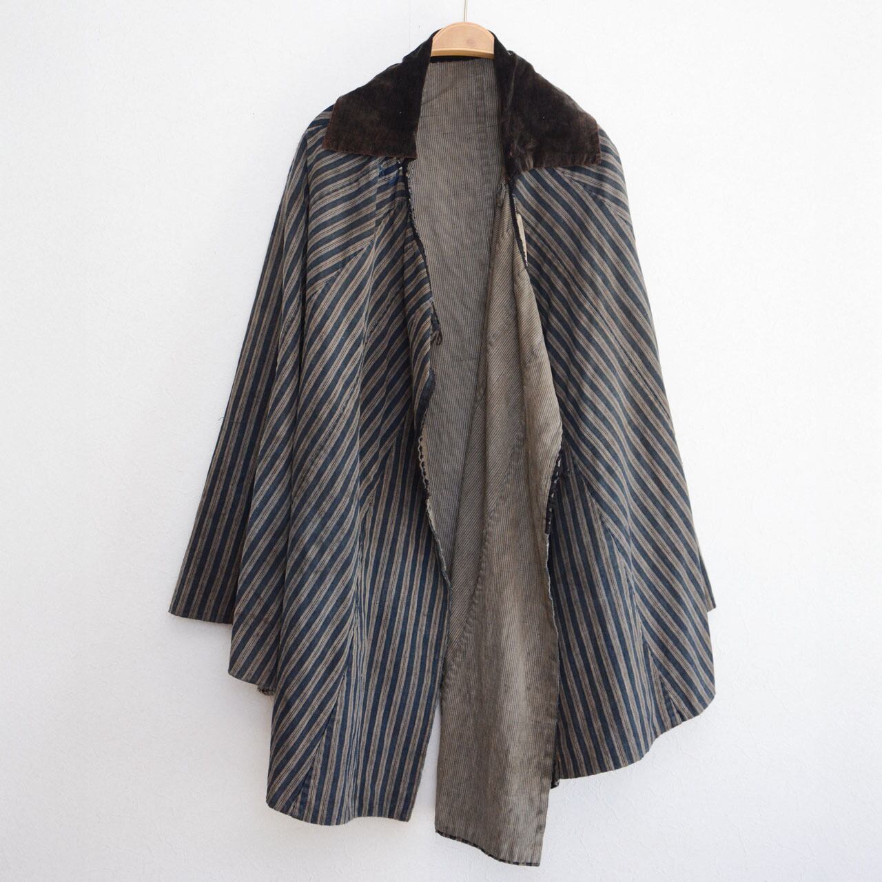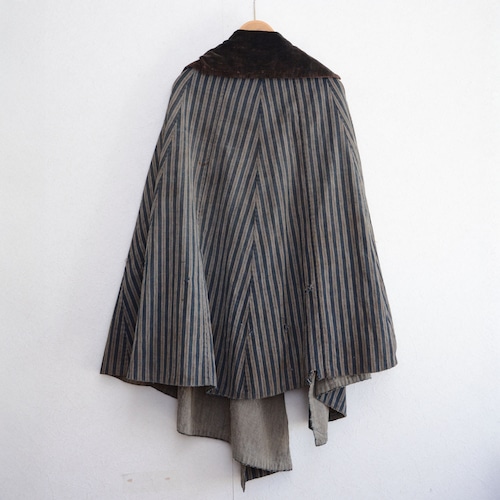 明治〜大正 道中合羽 藍染 木綿 ビロード襟付き / ジャパンヴィンテージ 雨用コート