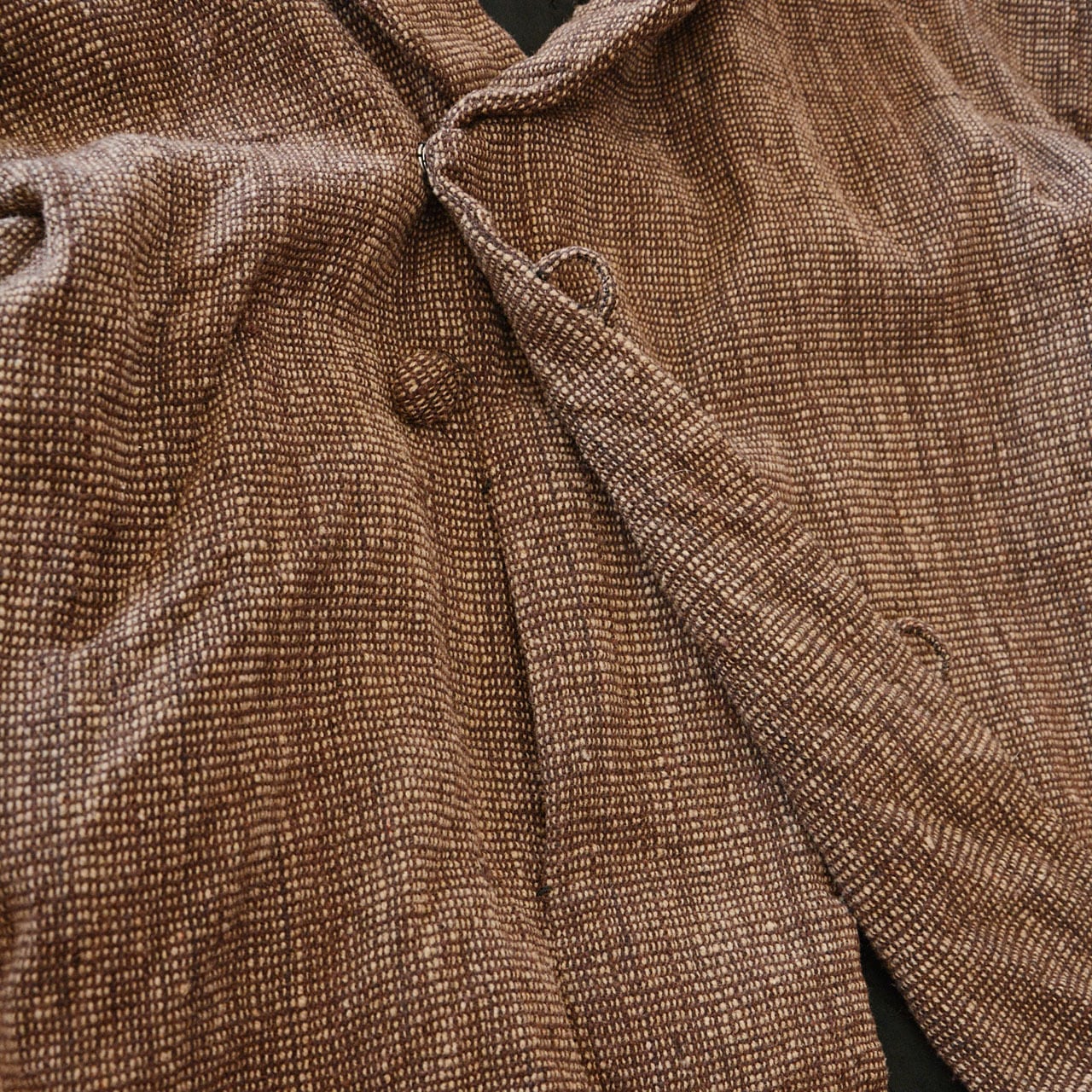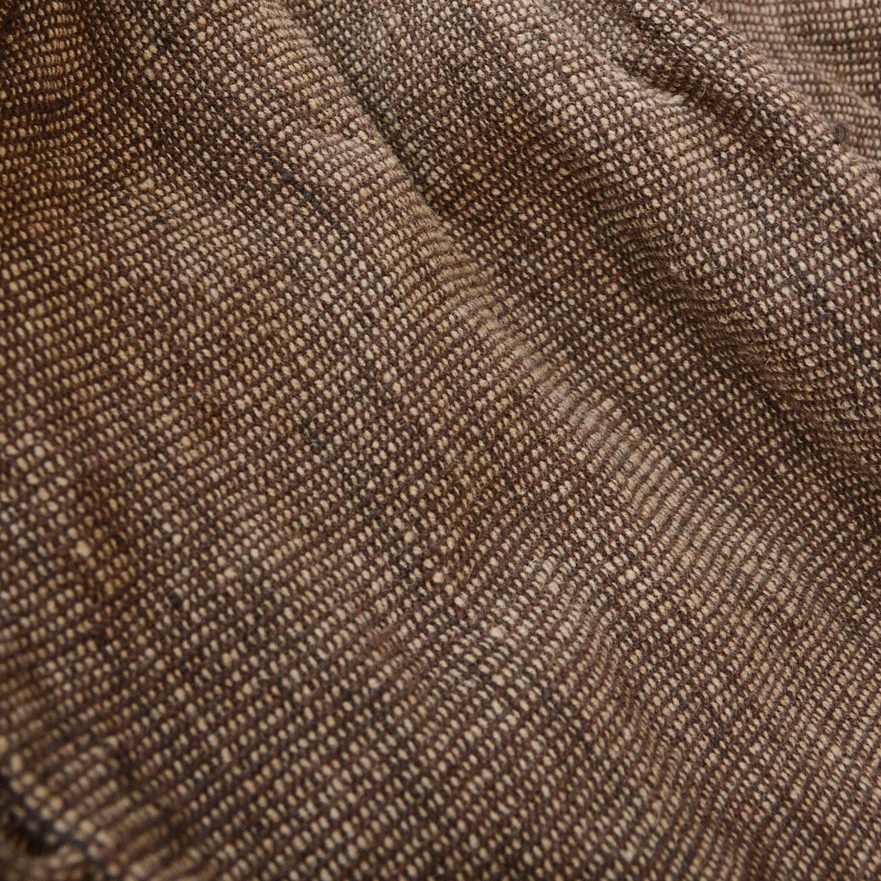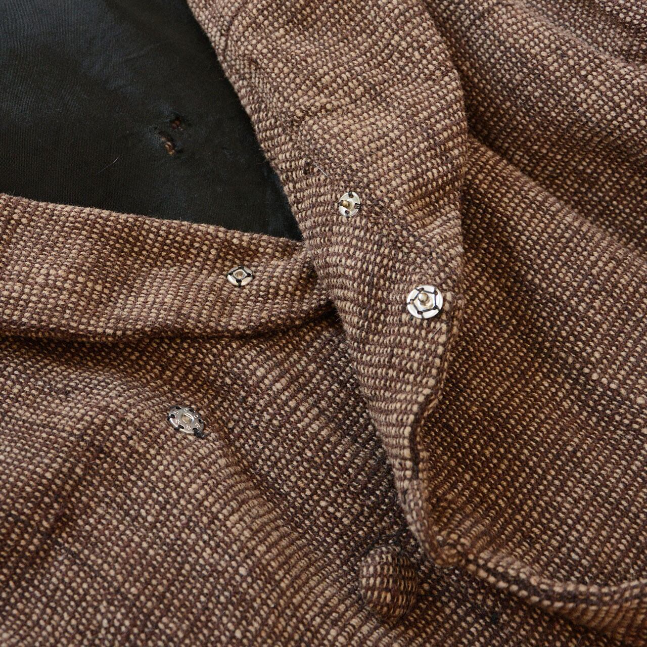 素材には素朴な質感のウールを使用し、手に取った瞬間に感じる重みや落ち感は、コートの存在感をさらに際立たせます。