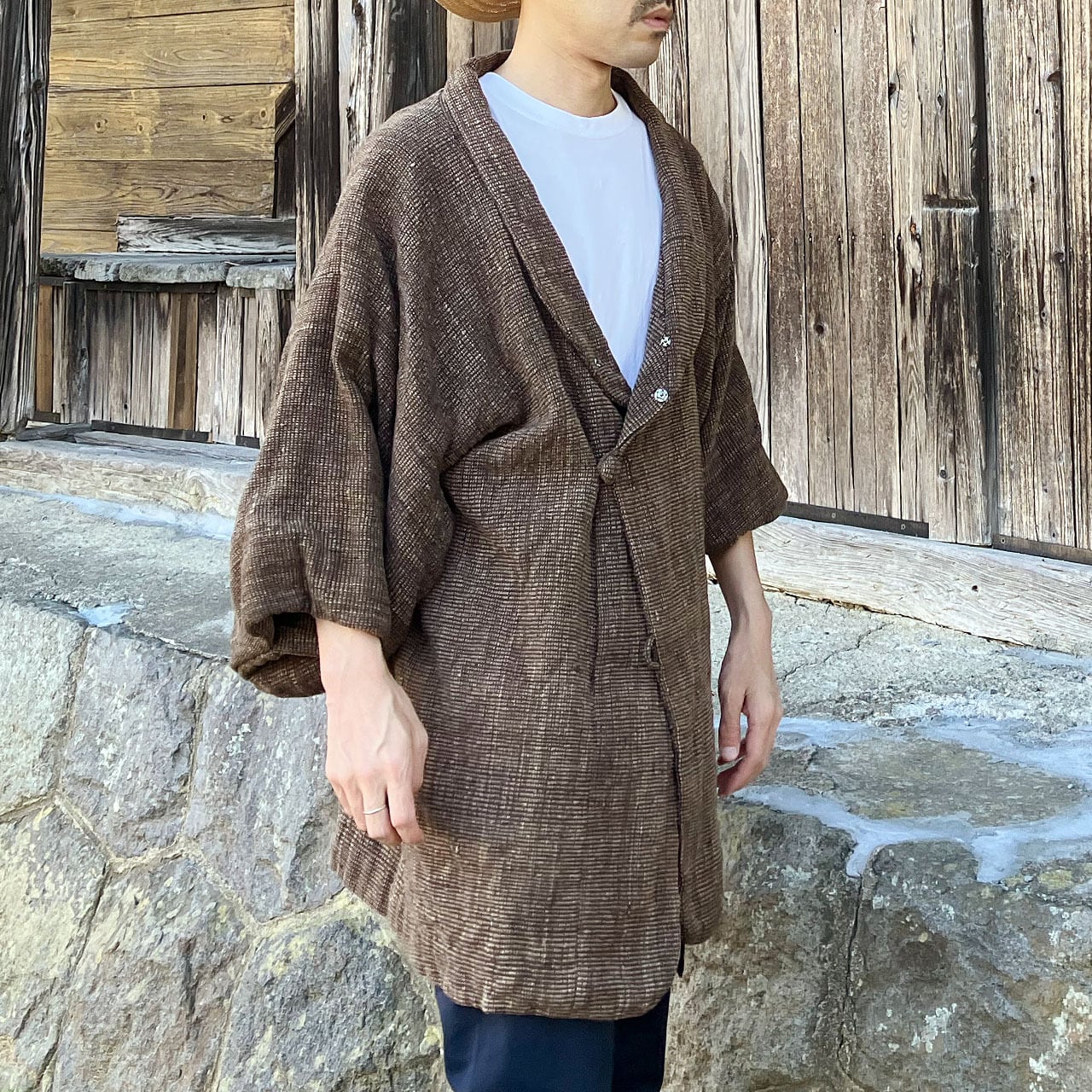 伝統的な着物(和装)コートのフォルムをベースにしつつ、無駄を削ぎ落としたソリッドなラインと洗練された佇まいが特徴で、単なるヴィンテージではなく、現代のファッション感覚に完全にフィットします。