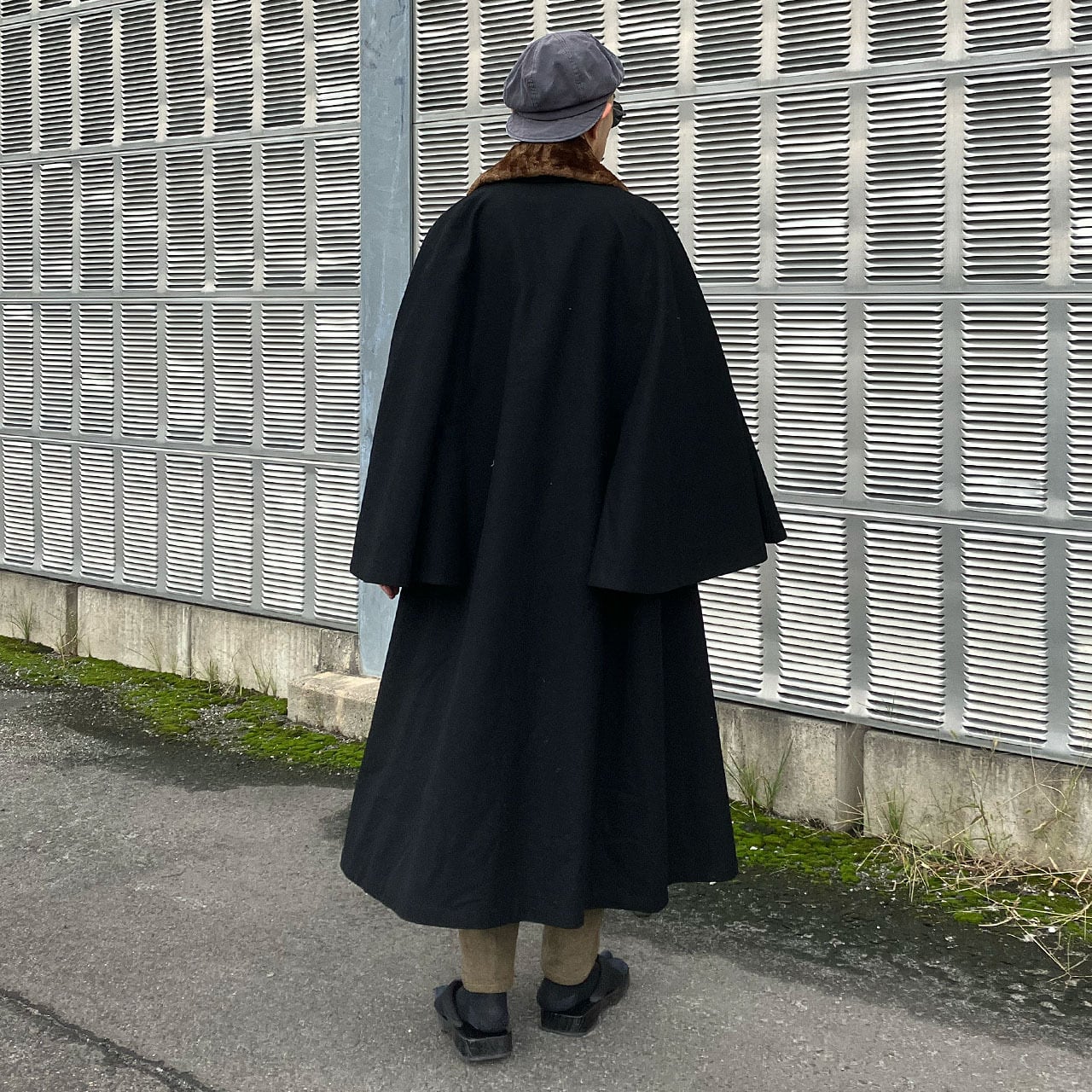 1920〜30年代 ジャパンヴィンテージ トンビマント/インバネスコート|二重廻し/ブラックウール/カワウソ毛皮襟