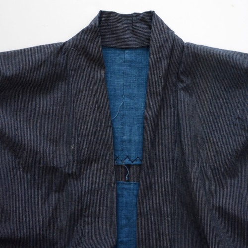 表地に藍染の縞模様、裏地に深い藍無地の生地を合わせた古い野良着です。