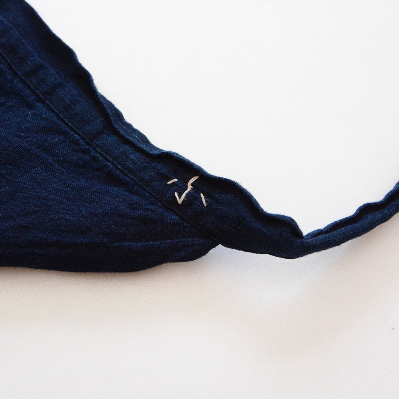 本品は無地の藍染木綿で仕立てられており、使い込まれた布地が柔らかく、独特の深みを帯びています。