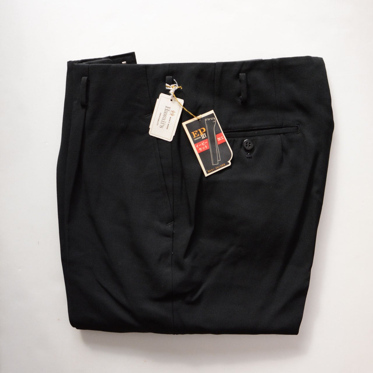 デッドストック 日本製 ヴィンテージスラックス|ハワイ商事|黒ウール|80〜90年代|未使用タグ付き