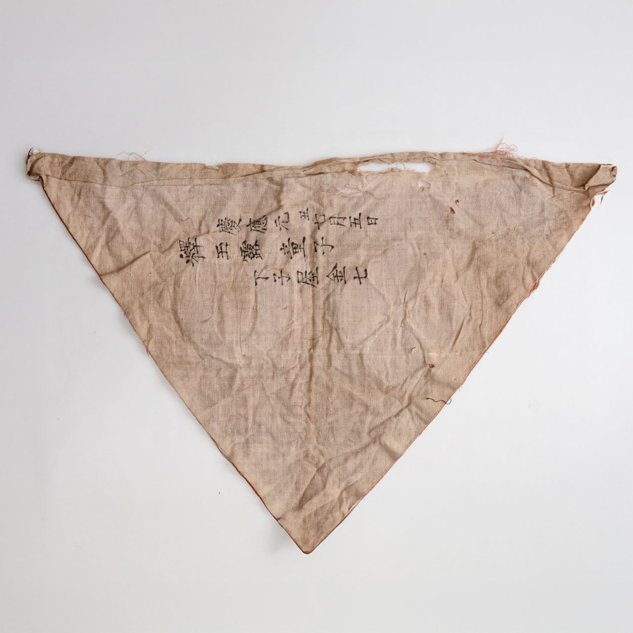 古布 幕末 慶応元年(1865) 三角旗 — 墨書「釈玉露童子」 家紋文様(供養旗の可能性)歴史資料・古裂