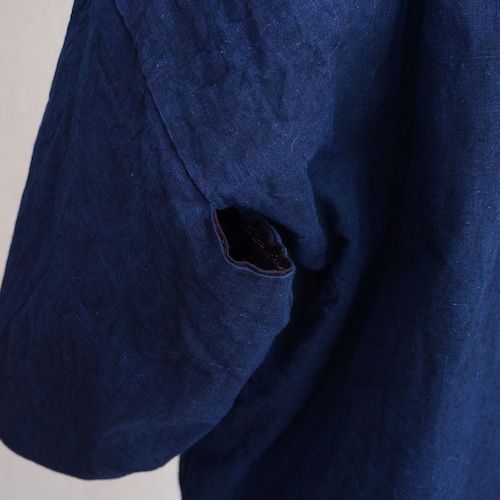 表側は実用本位の簡素な佇まいでありながら、内側にだけ静かに現れる藍の色味は、当時の生活者が持っていた美意識と合理性の両立を感じさせます。