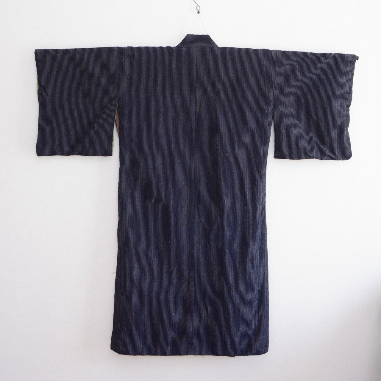 昭和初期〜中期頃 木綿 藍染縞 長着着物 裏面 クレイジーパターン|和装・資料・ハンドメイド・リメイク素材