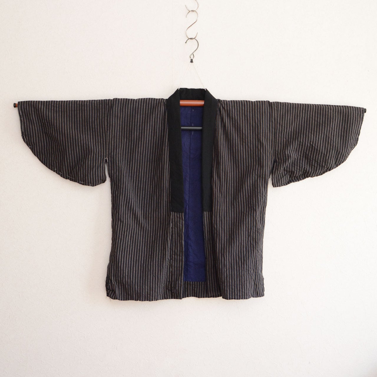 昭和初期〜中期 木綿 野良着 縞柄 裏面 クレイジーパターン 手縫い 襤褸 古布 ジャパンヴィンテージ