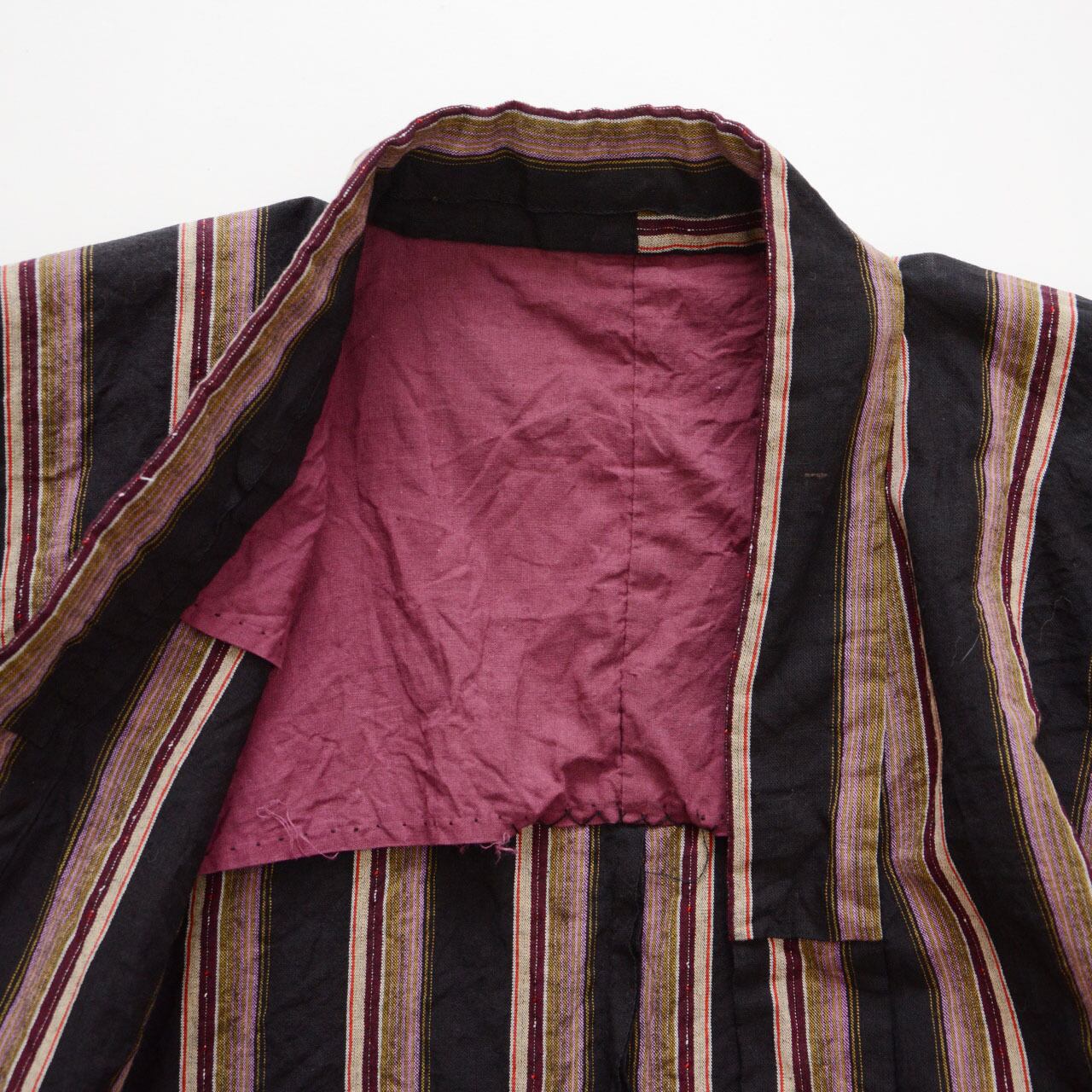 野良着 上っ張り 昭和期 古布 木綿 縞模様|ジャパンヴィンテージ リメイク素材