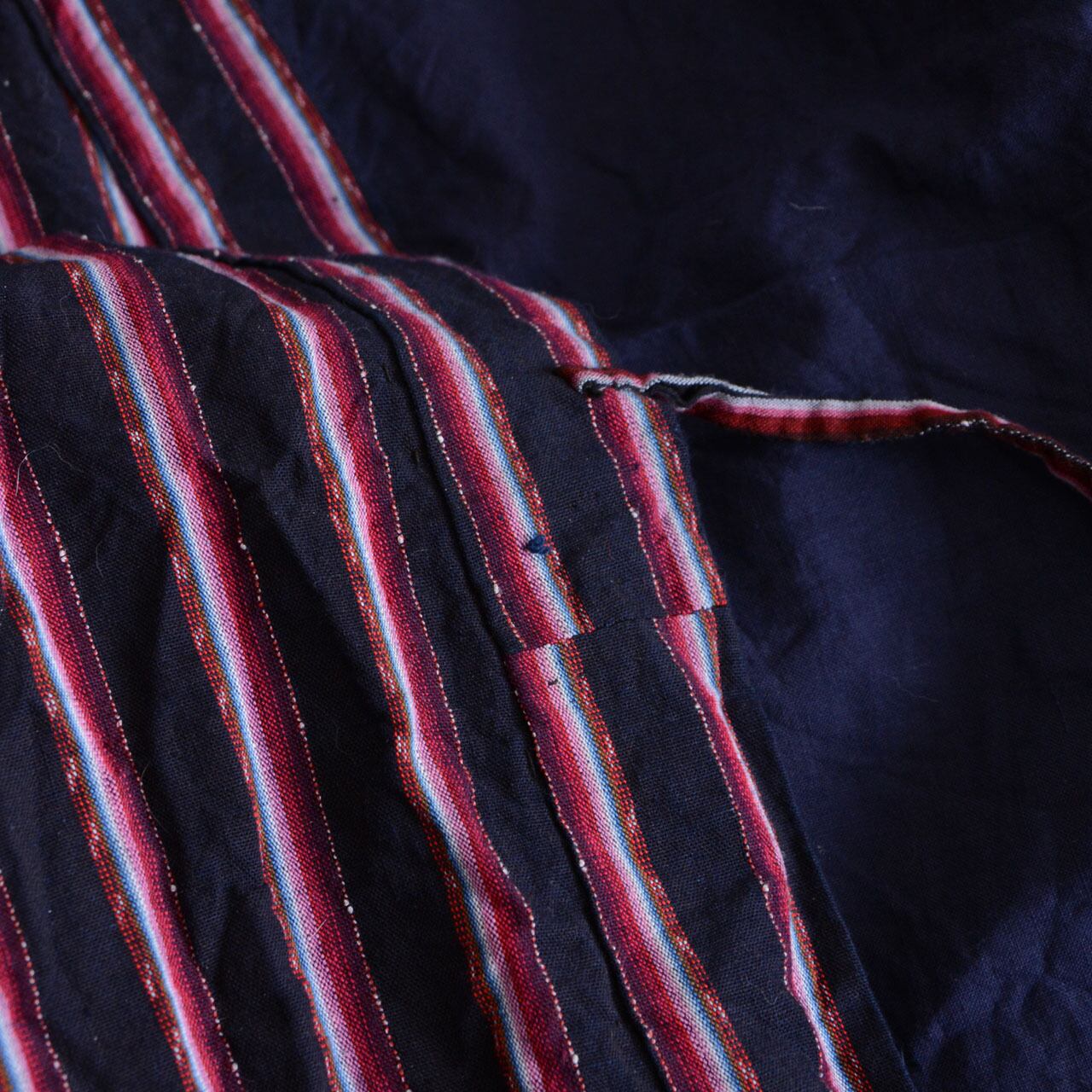 野良着 上っ張り 藍染 木綿 縞模様 昭和期|古布・リメイク素材 ジャパンヴィンテージ
