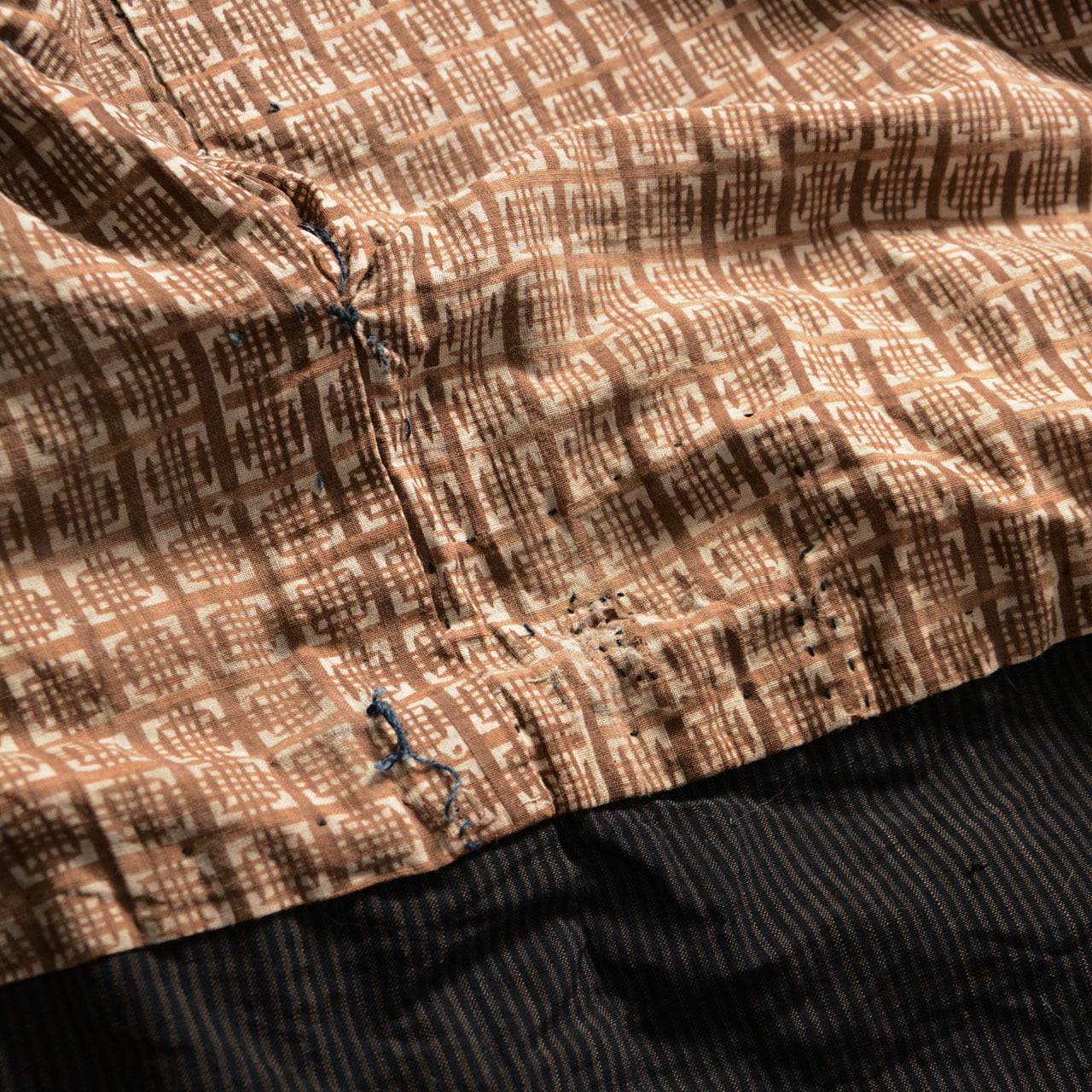 装飾を目的としたものではなく、当時の生活の中で必要に応じて施された実用的な補修であり、その素朴さがこの野良着の魅力の一つとなっています。