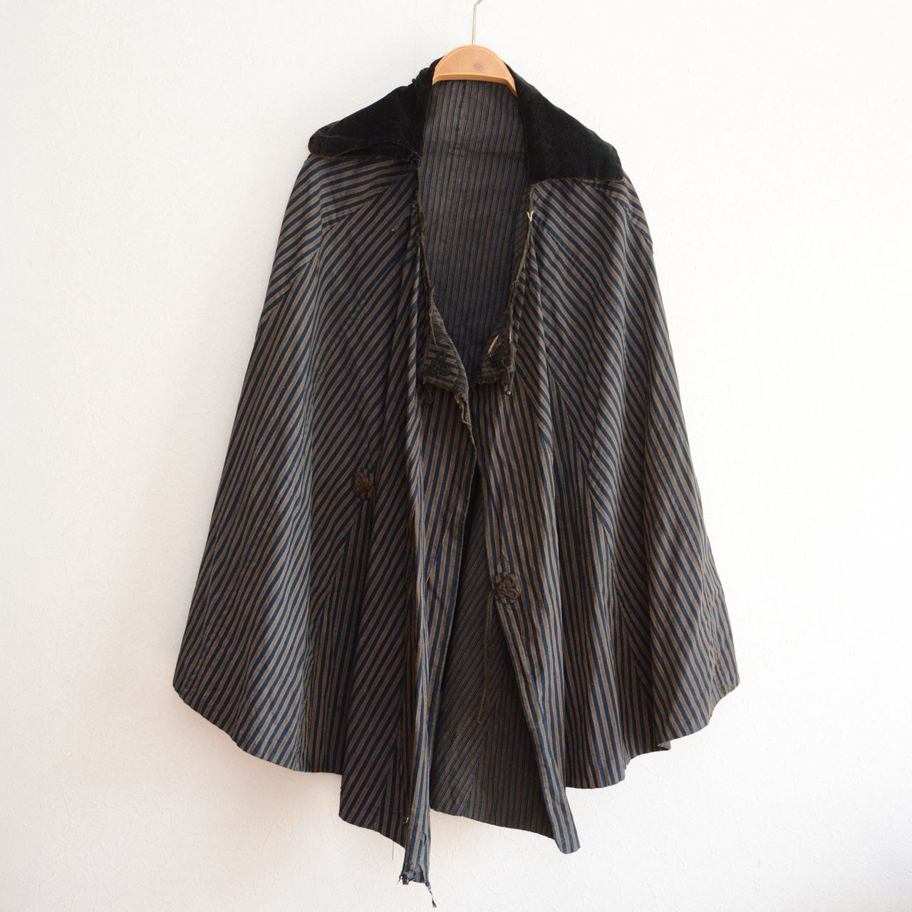 明治〜昭和初期 藍染 木綿 道中合羽 ビロード襟付き|映画・舞台衣装/時代考証資料向け ジャパンヴィンテージ 雨用コート