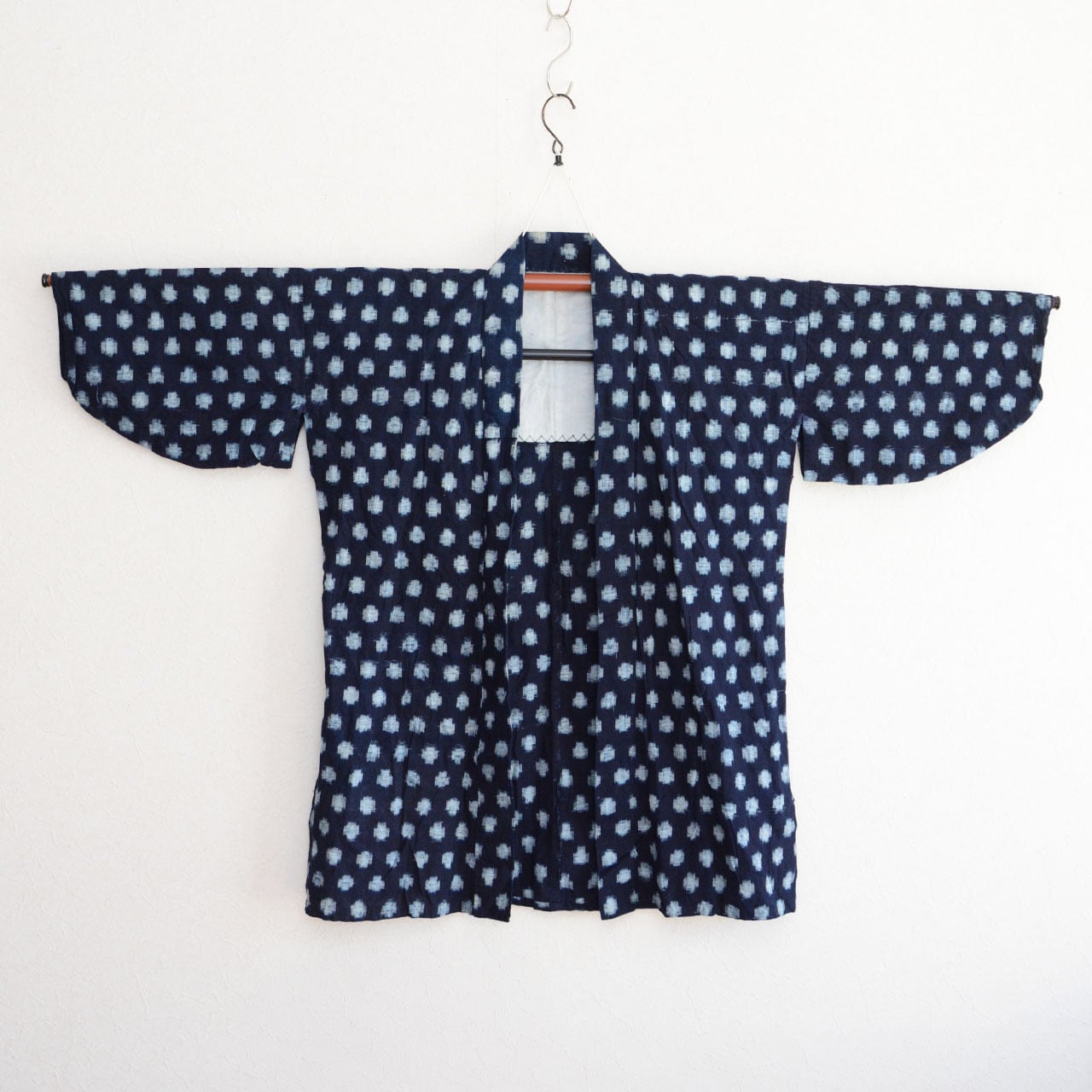 昭和中期に作られた藍染木綿の野良着で、希少な「ぼた雪柄」です。