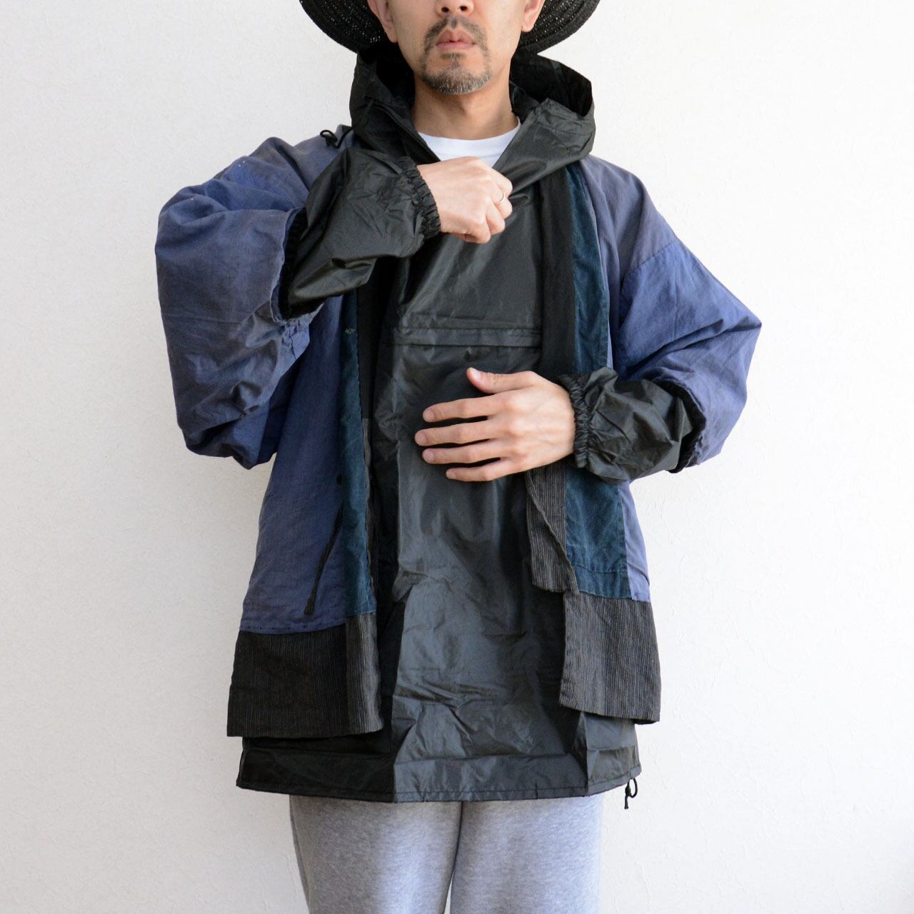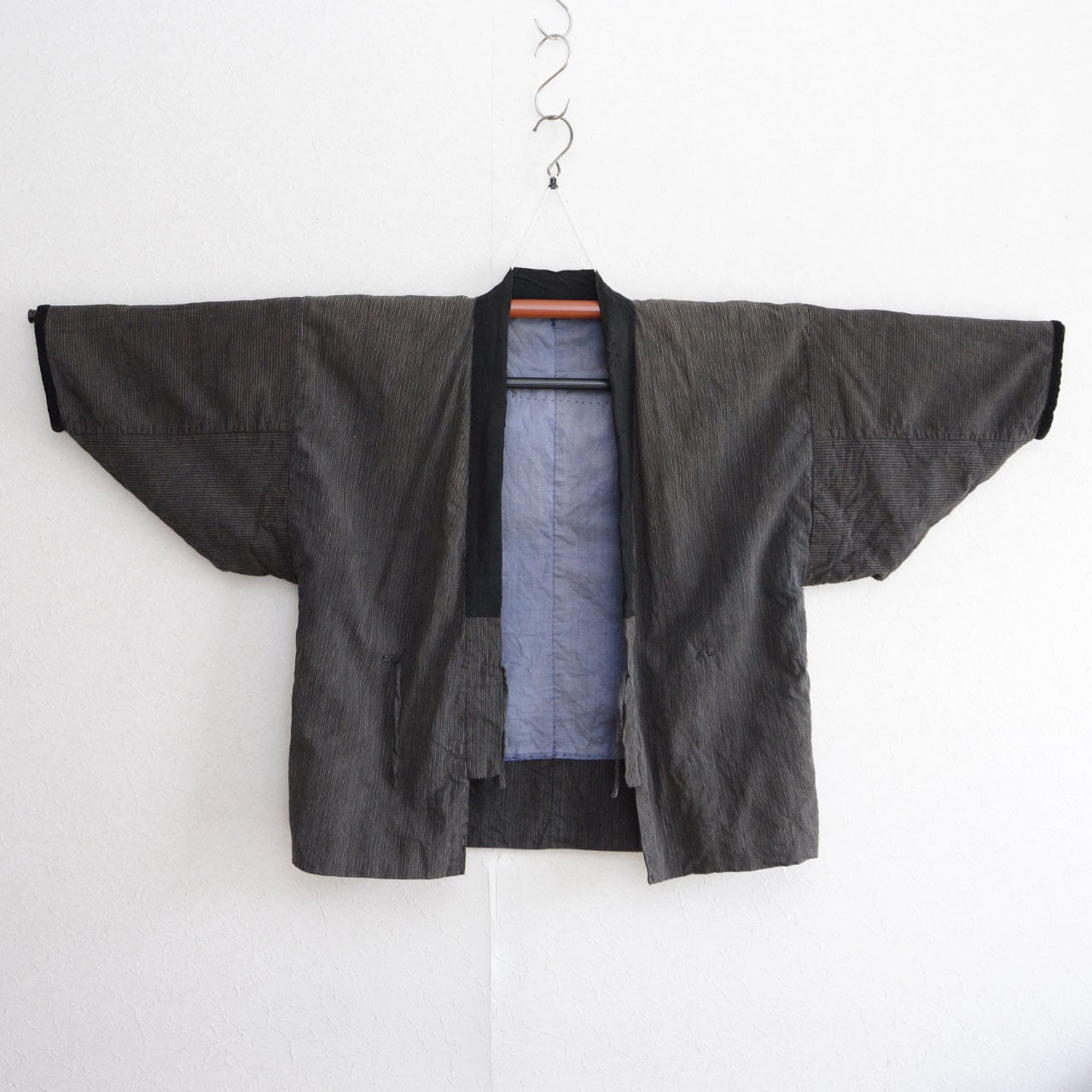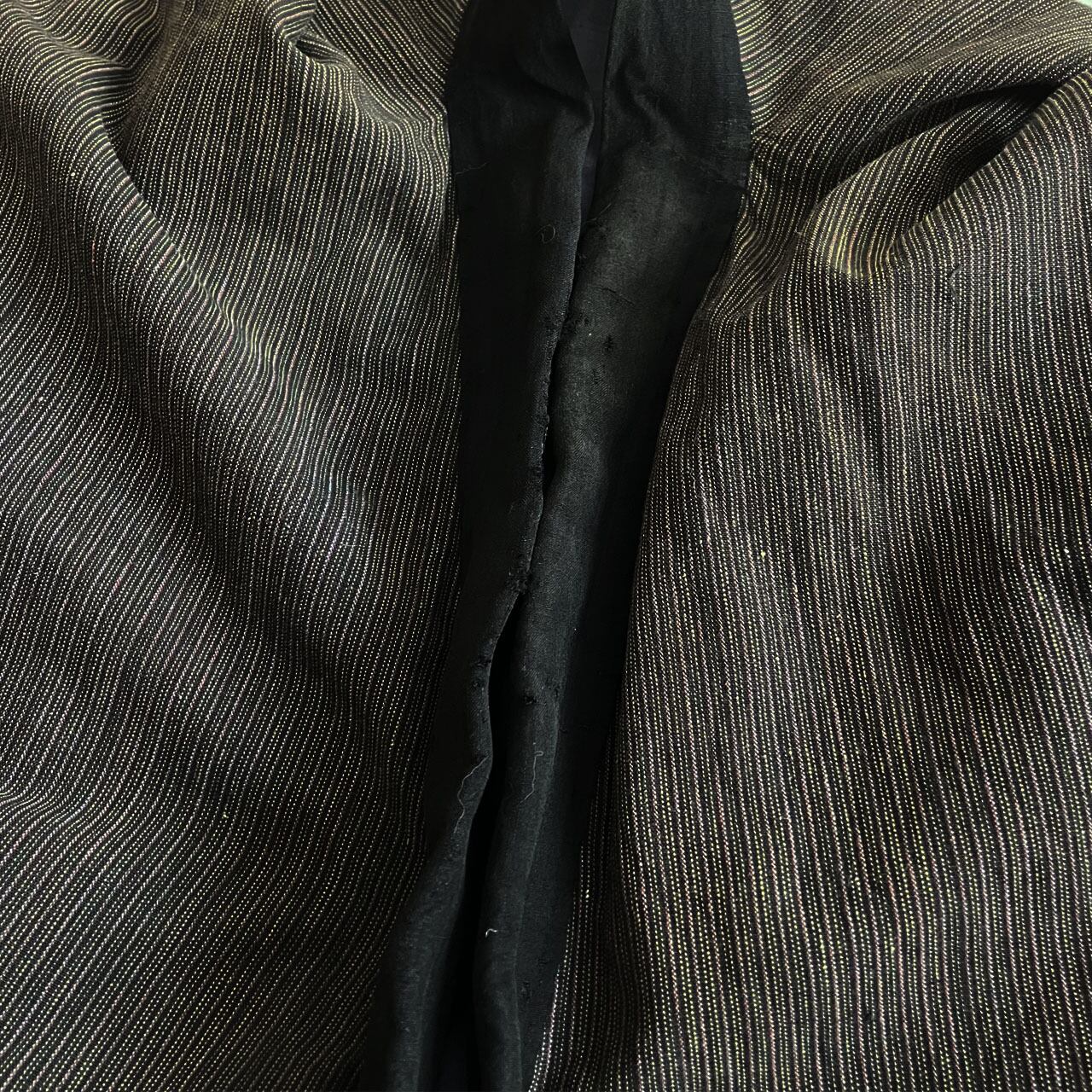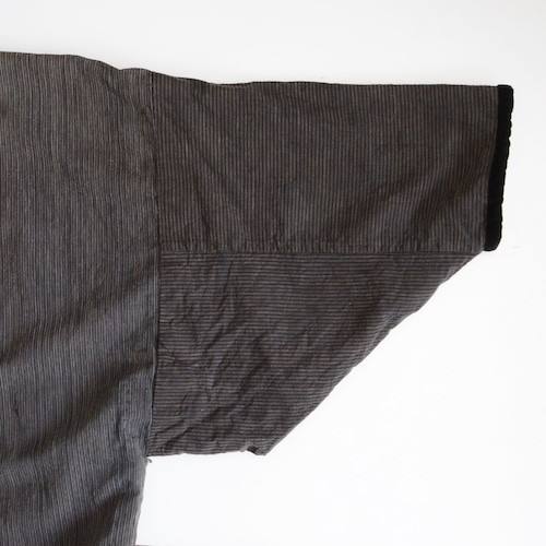 表面は縞模様の木綿生地で、袖と身頃で異なる縞柄を組み合わせたクレイジーパターン。日本の作業着らしい実用性の中に、偶然性のある面白い表情を見ることができます。