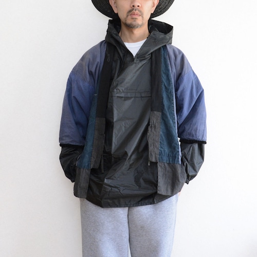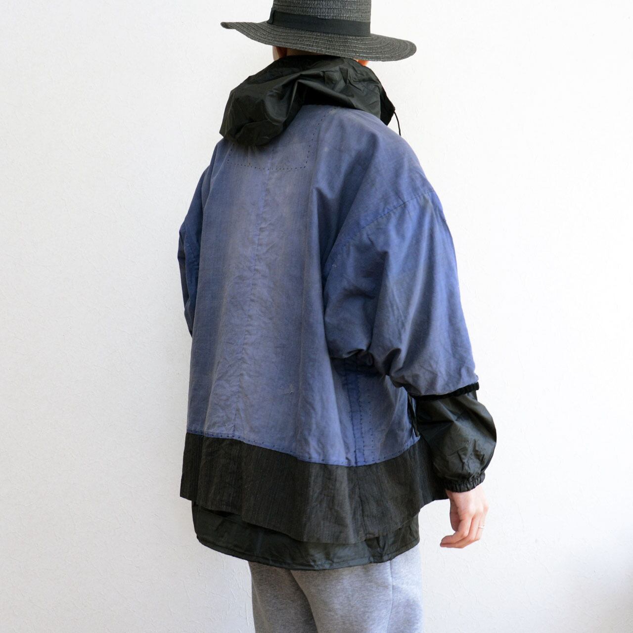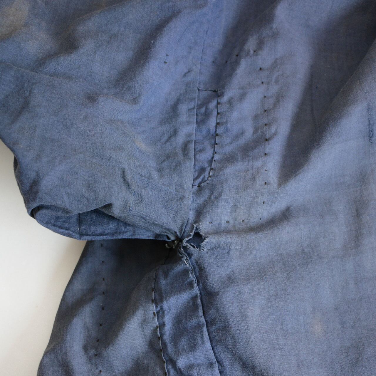 裏面はブルーベースの無地生地。長年の使用によって生まれたフェード感が美しく、柔らかな雰囲気を持っています。また、裏面にはリペア跡が見られ、襤褸の魅力を感じられるディテールとなっています。