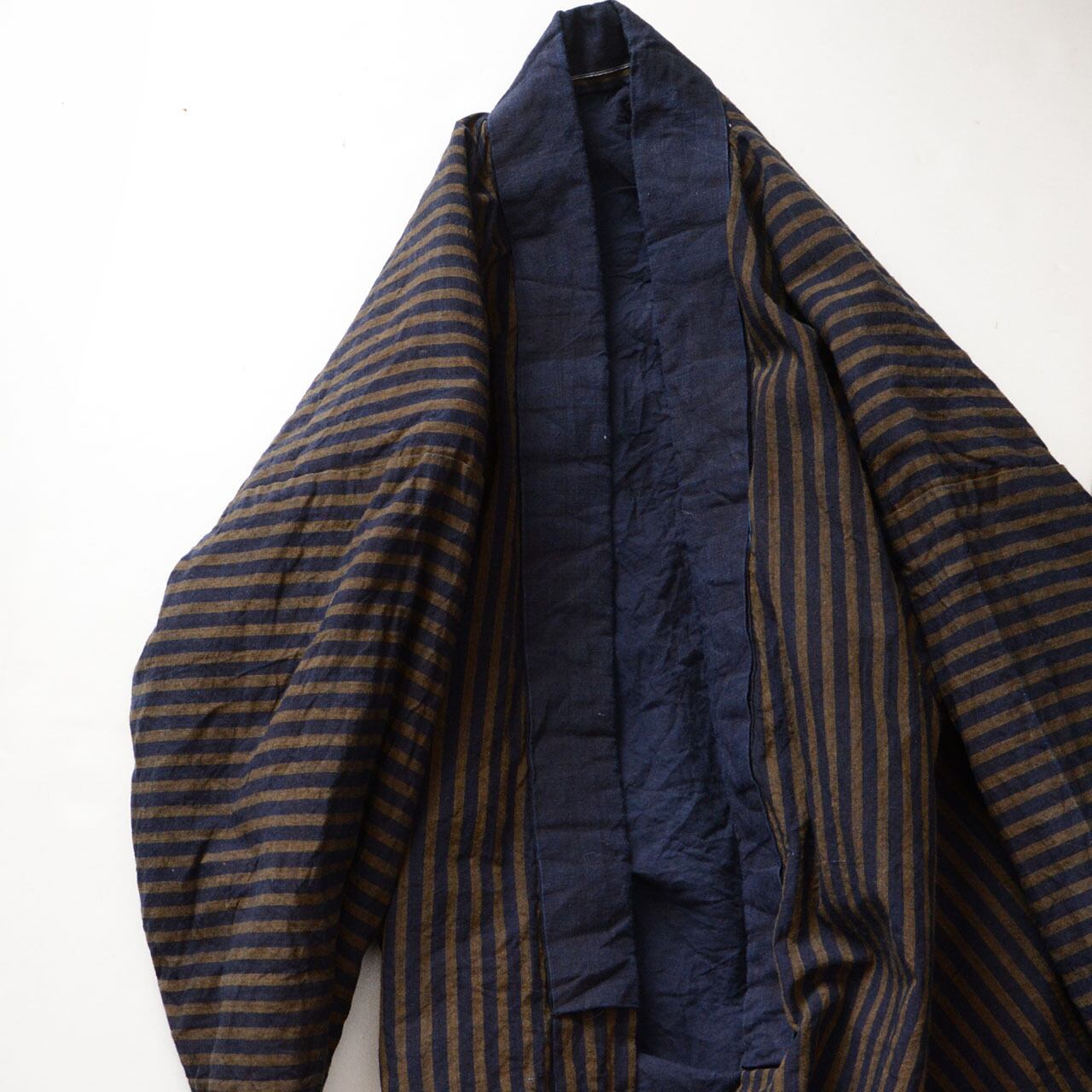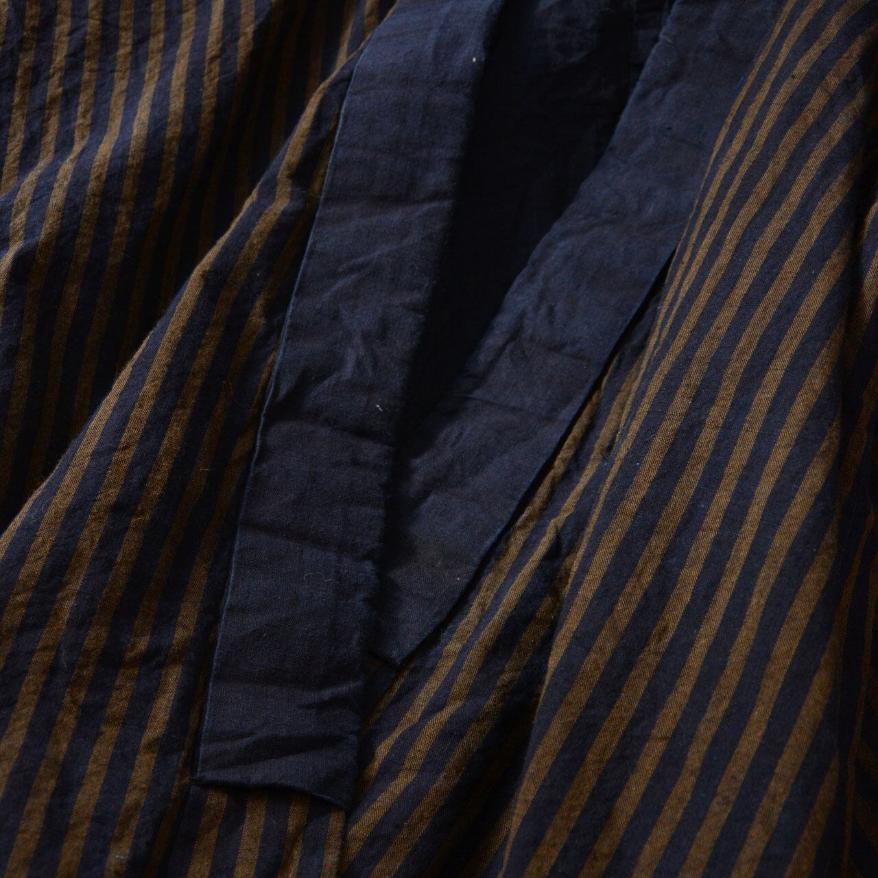 特に特徴的なのは、一般的な縞よりもピッチが太めのストライプで、素朴ながらも力強い印象を与える魅力的な柄です。