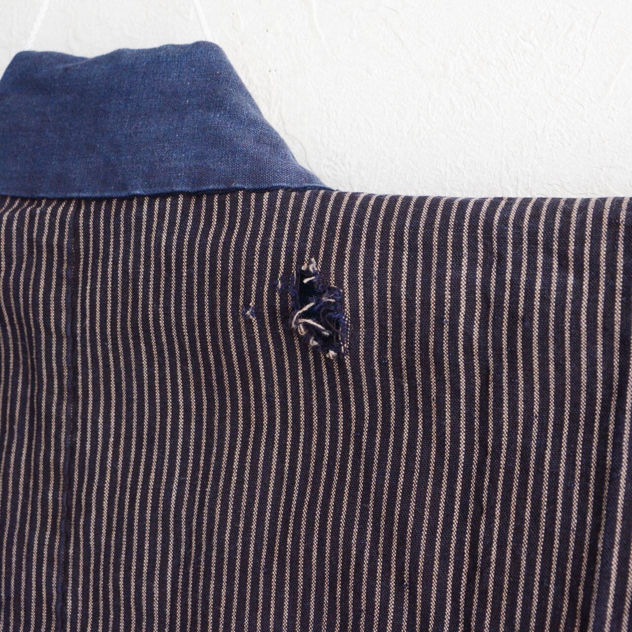 こうした痕跡も、この野良着が実際に生活の中で使われてきた証であり、静かなドラマを感じさせるディテールです。