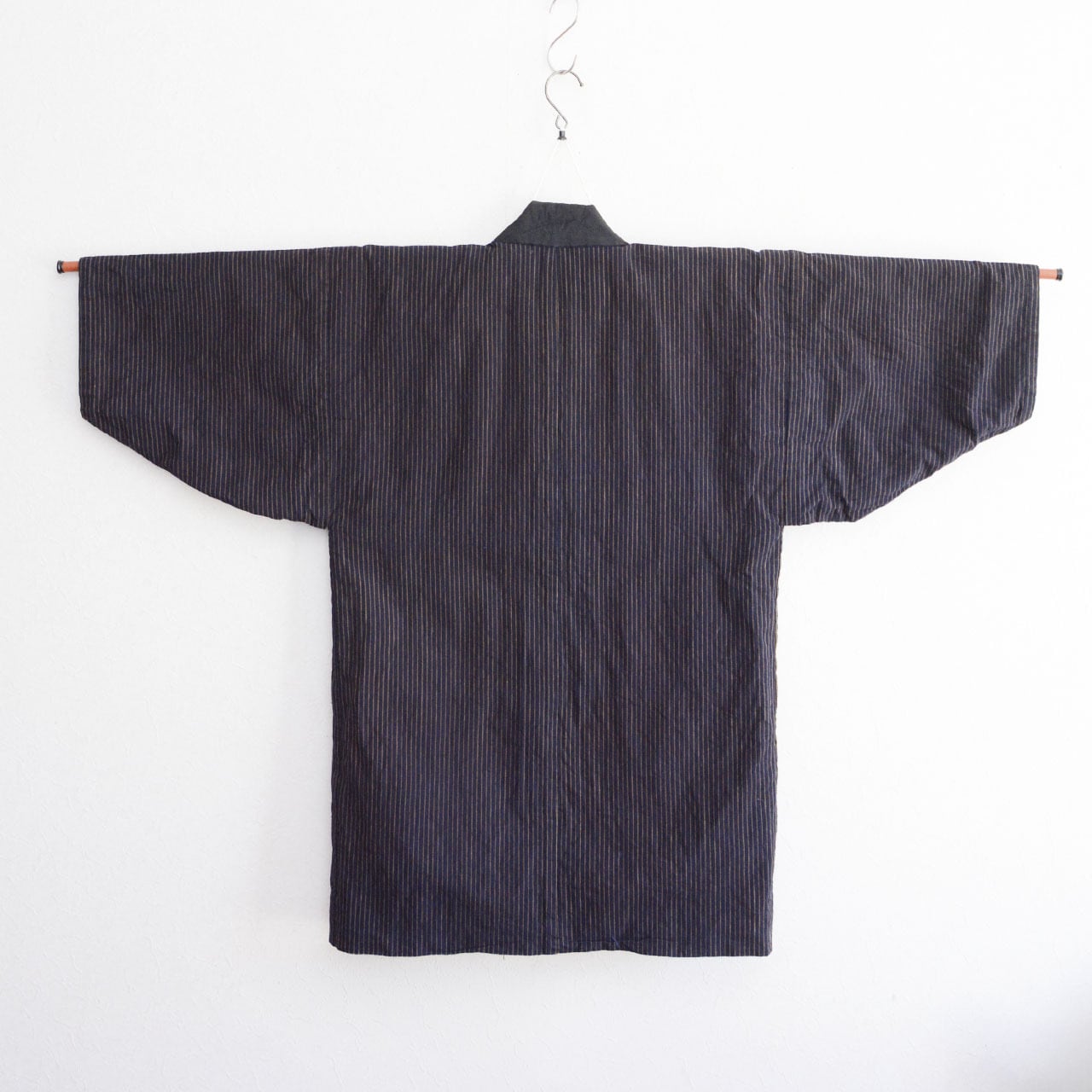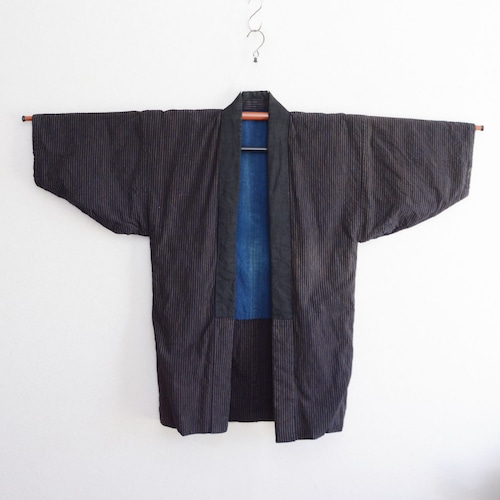 表面は伝統的な縞模様ながら、最大の魅力は裏面の深い藍染無地です。藍の色味は、世界中のヴィンテージ愛好家から高く評価されており、海外でも熱狂的な人気を誇る逸品です。