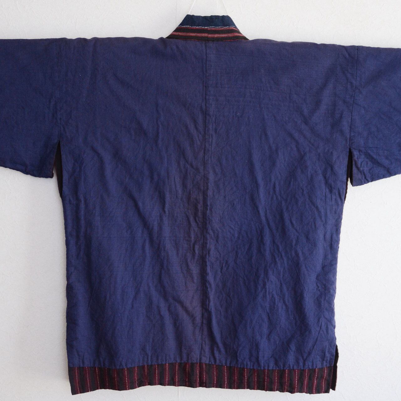 仕立ては当時らしい手縫い。長年着込まれてきたことで生まれた柔らかな質感と、古布特有の風合いが魅力です。使い込まれた布ならではの味わいが感じられるコンディションとなっています。