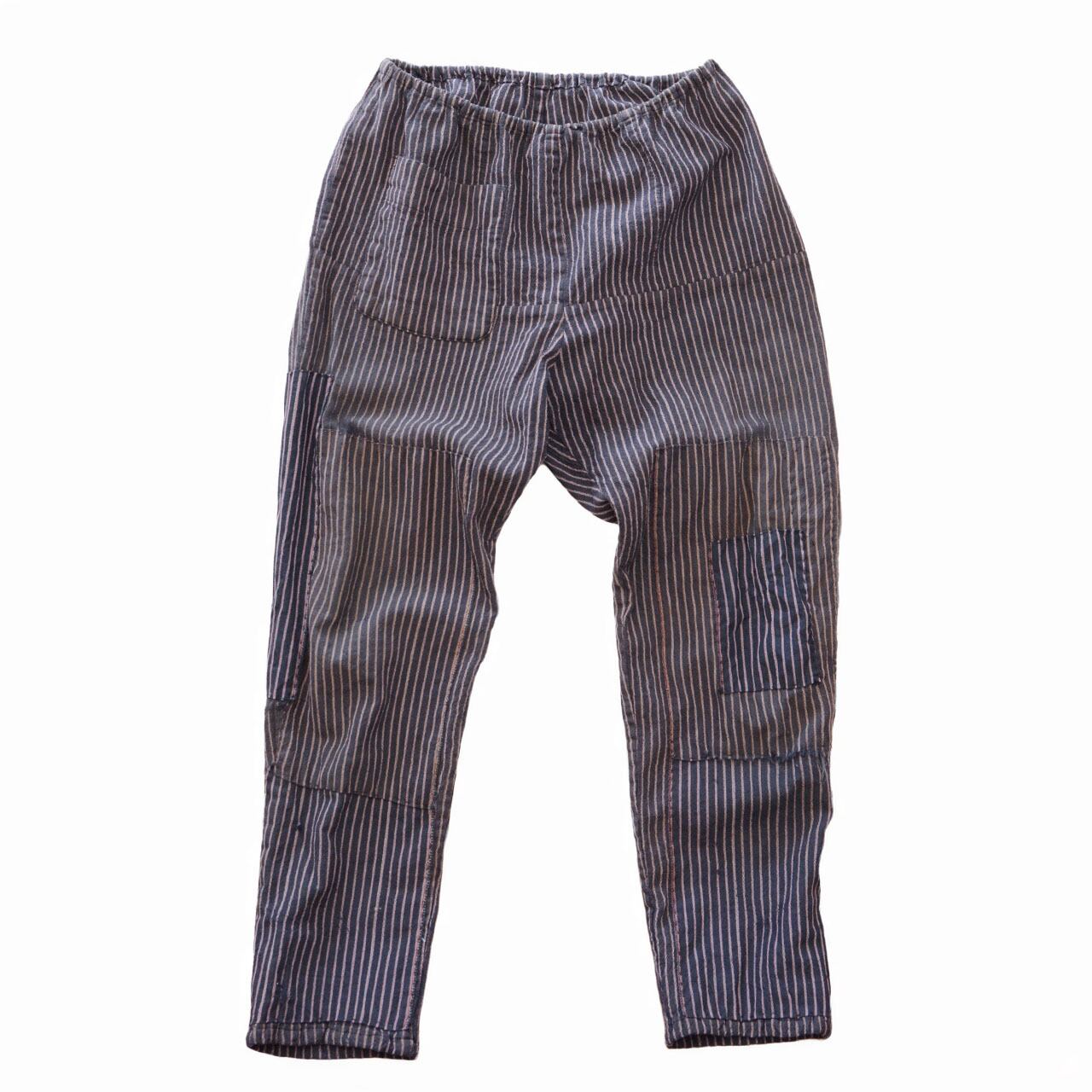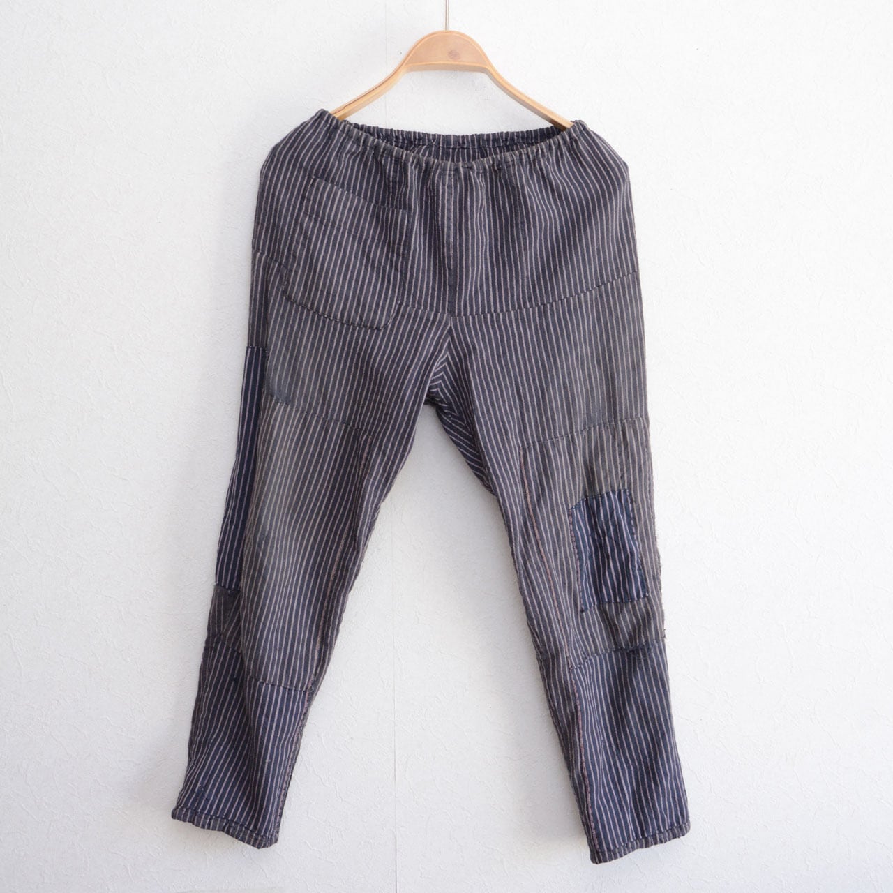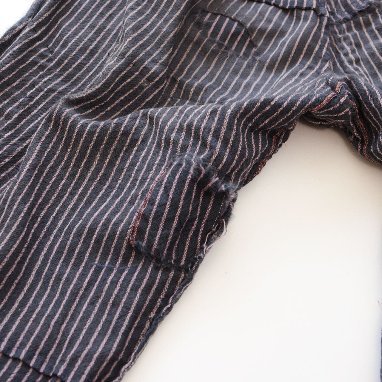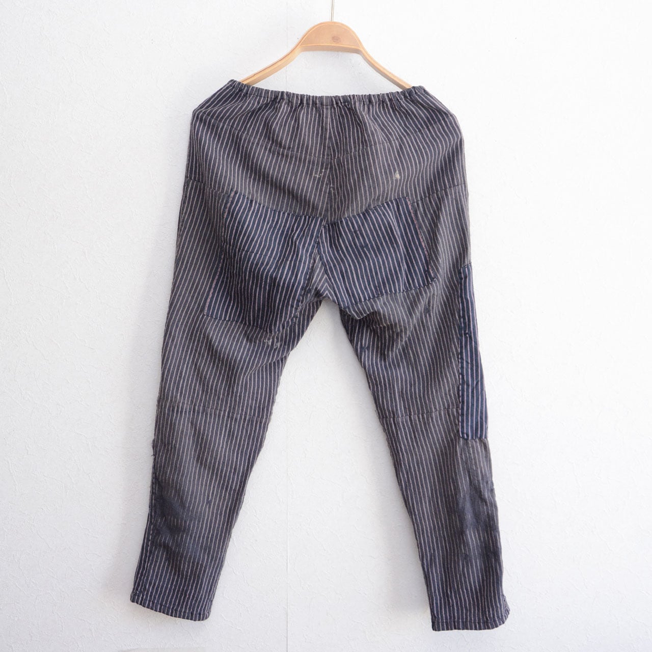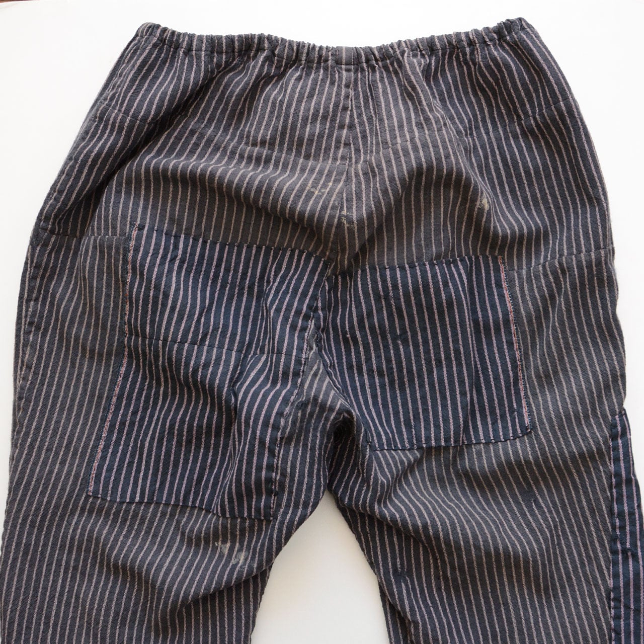 昭和中期 襤褸 もんぺ 縞柄 リペア 古布 パンツ ジャパンヴィンテージ | リメイク素材
