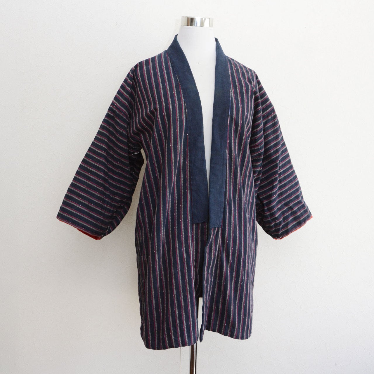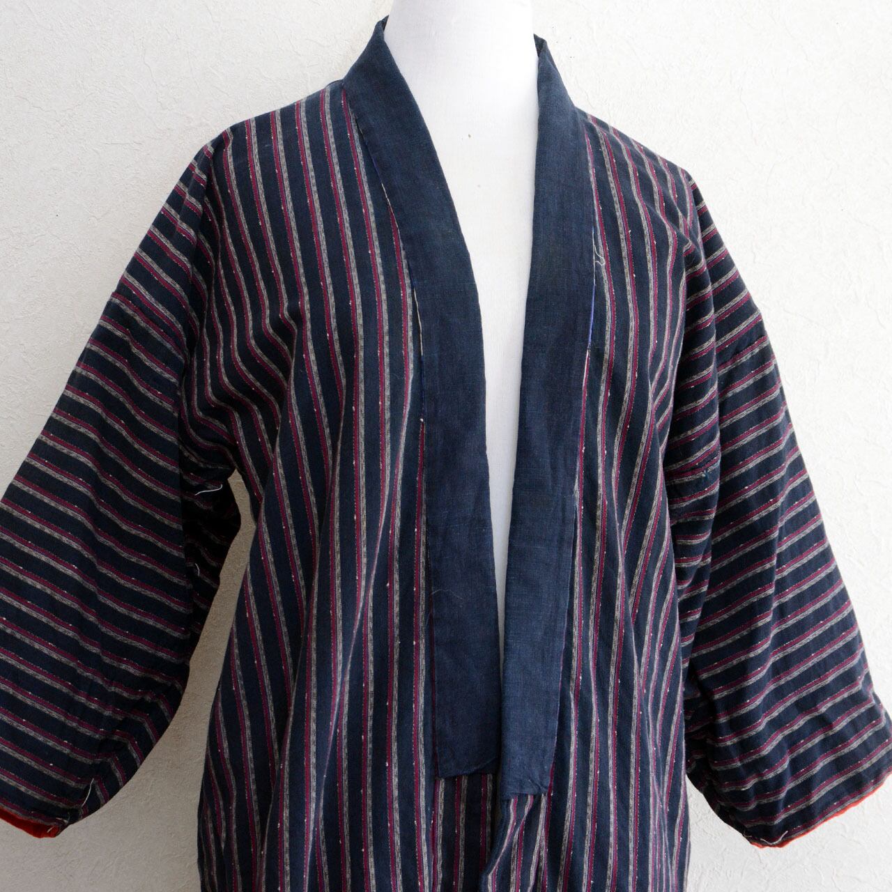 野良着 昭和初期〜中期 藍染 縞模様 木綿 古布 ジャパンヴィンテージ
