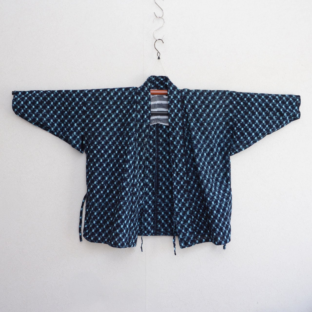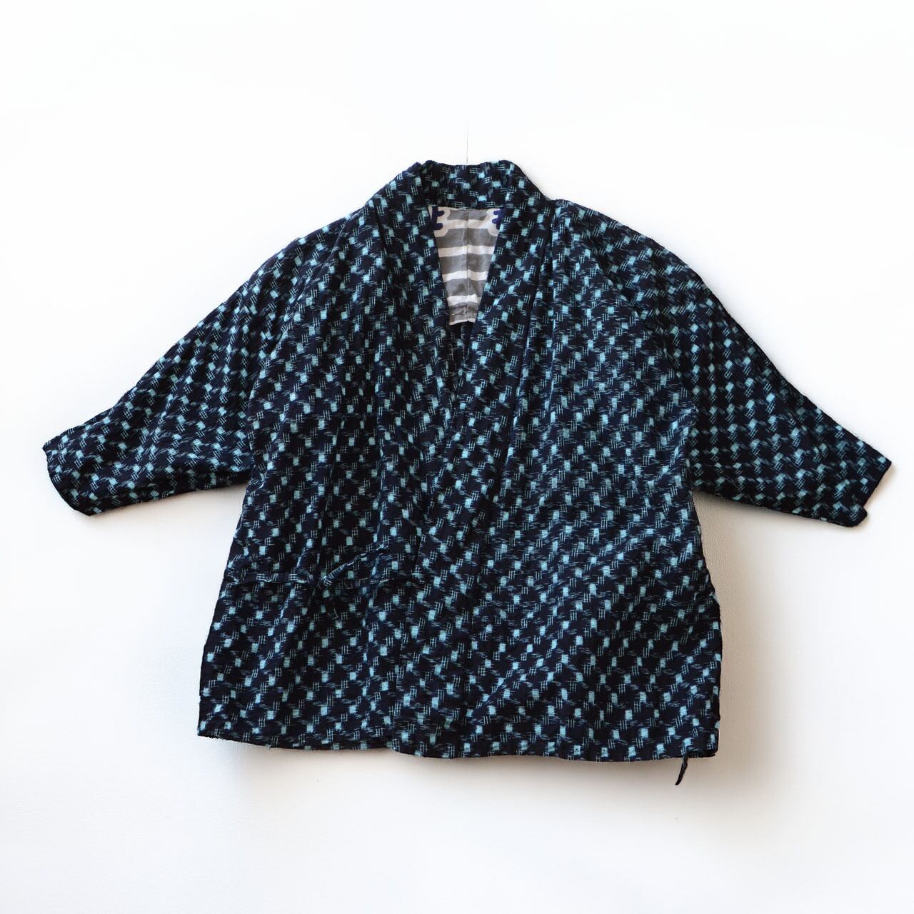 野良着 昭和中期 藍染 絣 木綿 手縫い 手ぬぐい裏地 ジャパンヴィンテージ 羽織り リメイク素材