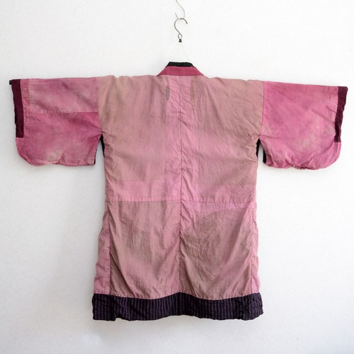 野良着 襤褸 昭和初期 東北地方|木綿 古布|フェード ピンク ストライプ|ジャパンヴィンテージ