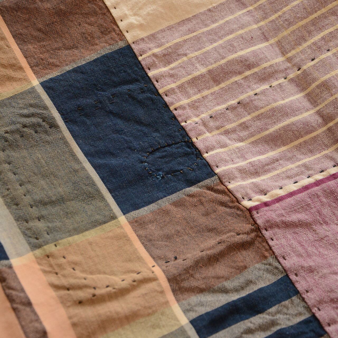 襤褸 古布 昭和初期 木綿 格子 布団皮 ほどき|東北出・大判184×168cm|リメイク・インテリア・コレクション|ジャパンヴィンテージ
