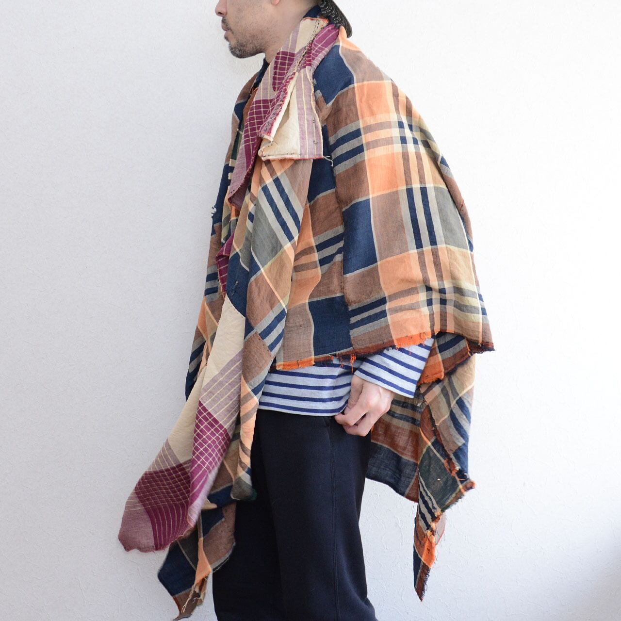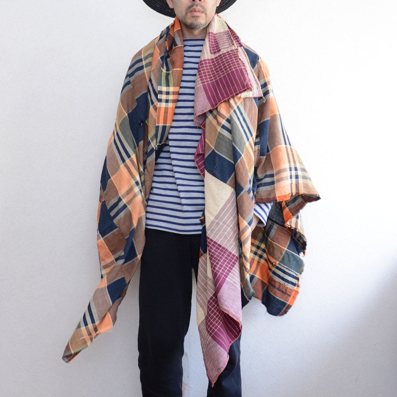 184×168cmという大判サイズは、ストールとして羽織るだけで様になります。