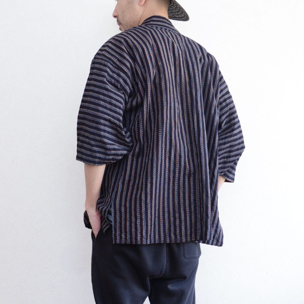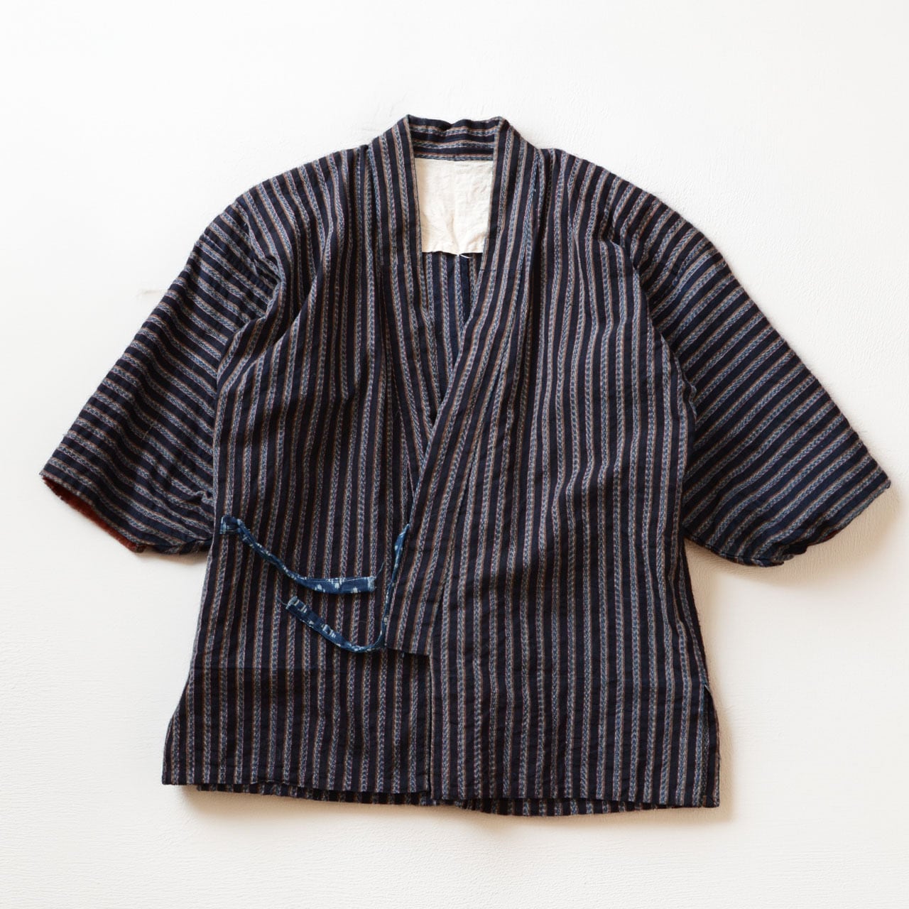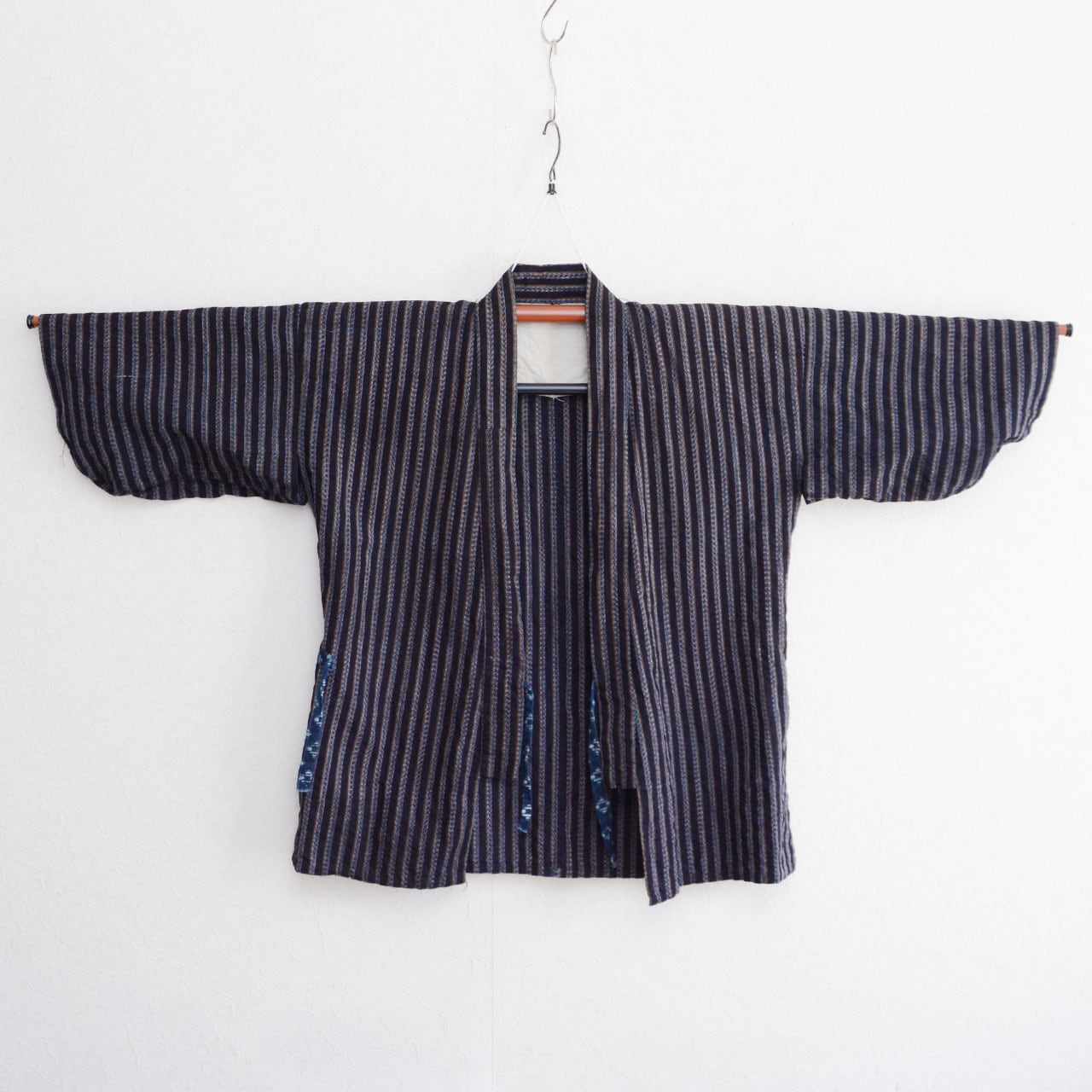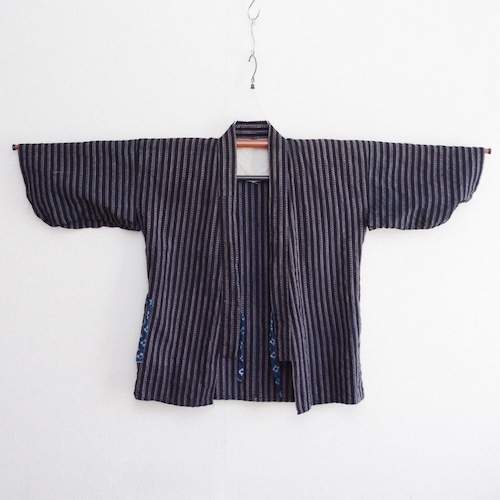 野良着 ジャケット 昭和中期 ジャパンヴィンテージ|藍染 縞 木綿|絣 羽織紐|古布 ハンドメイド・リメイク素材