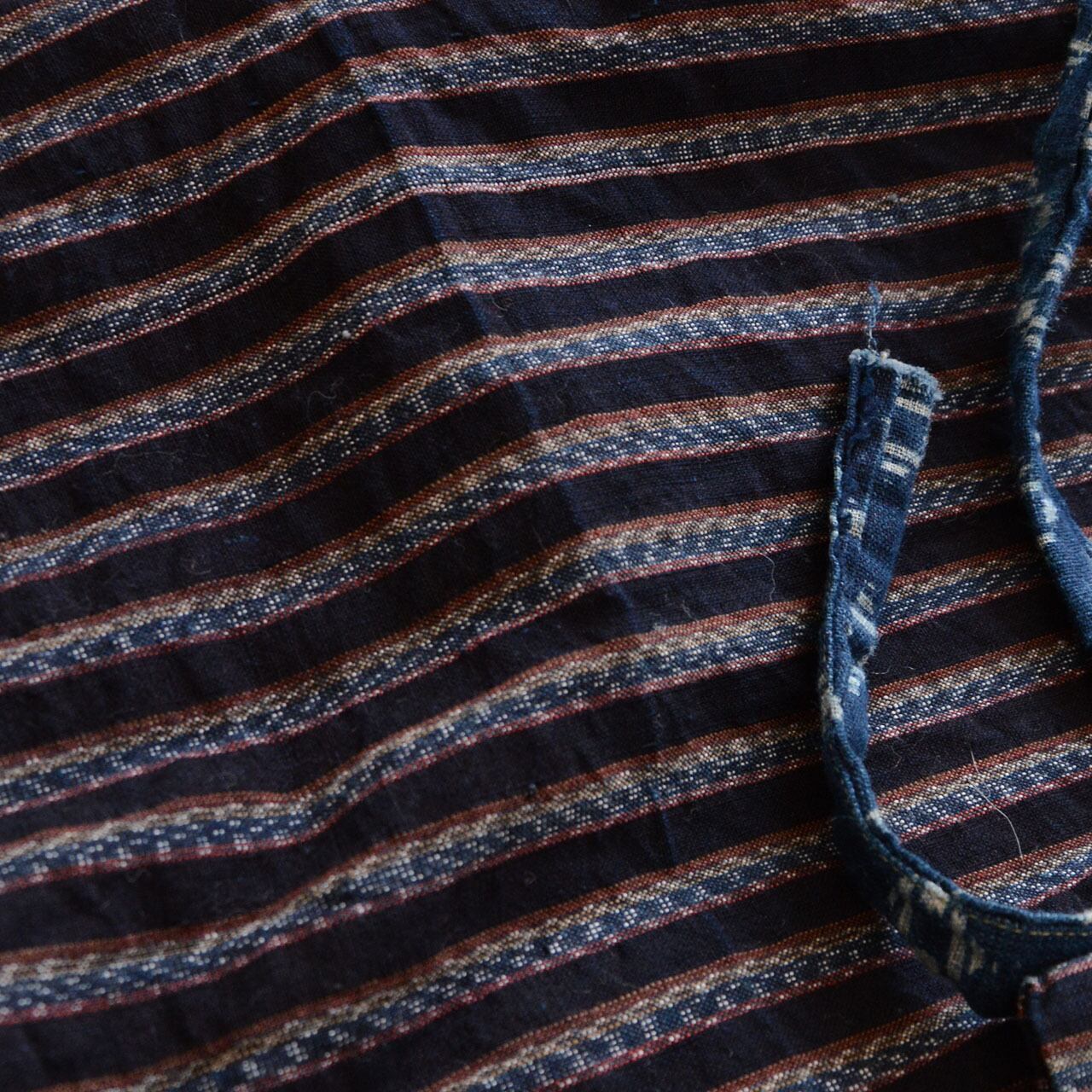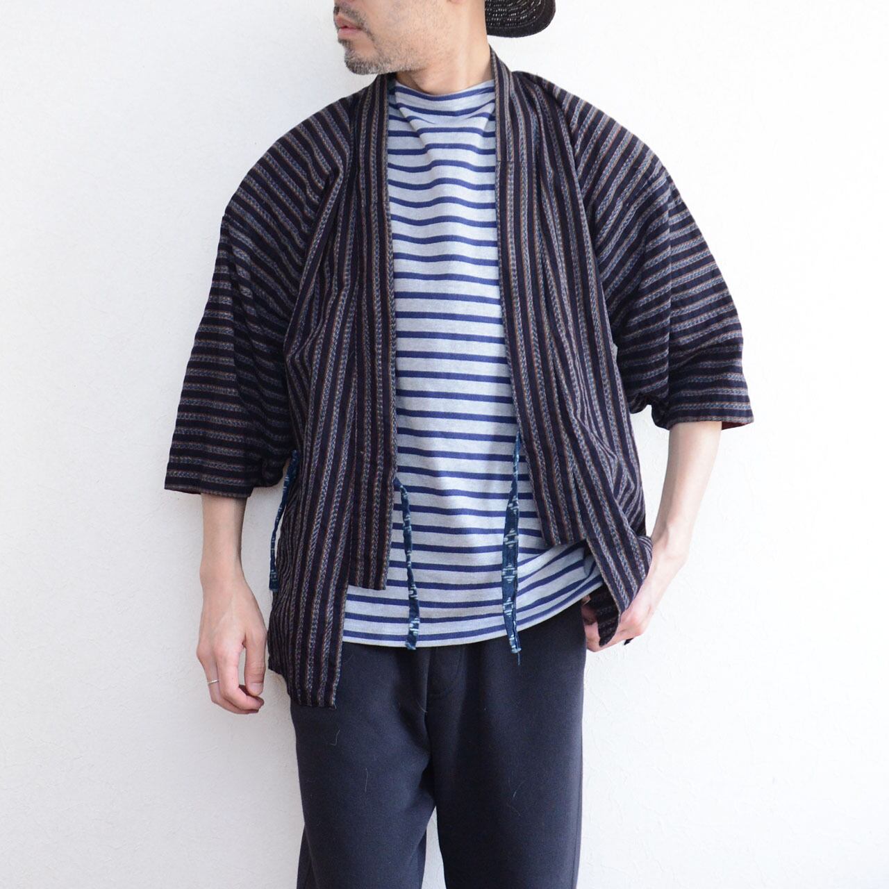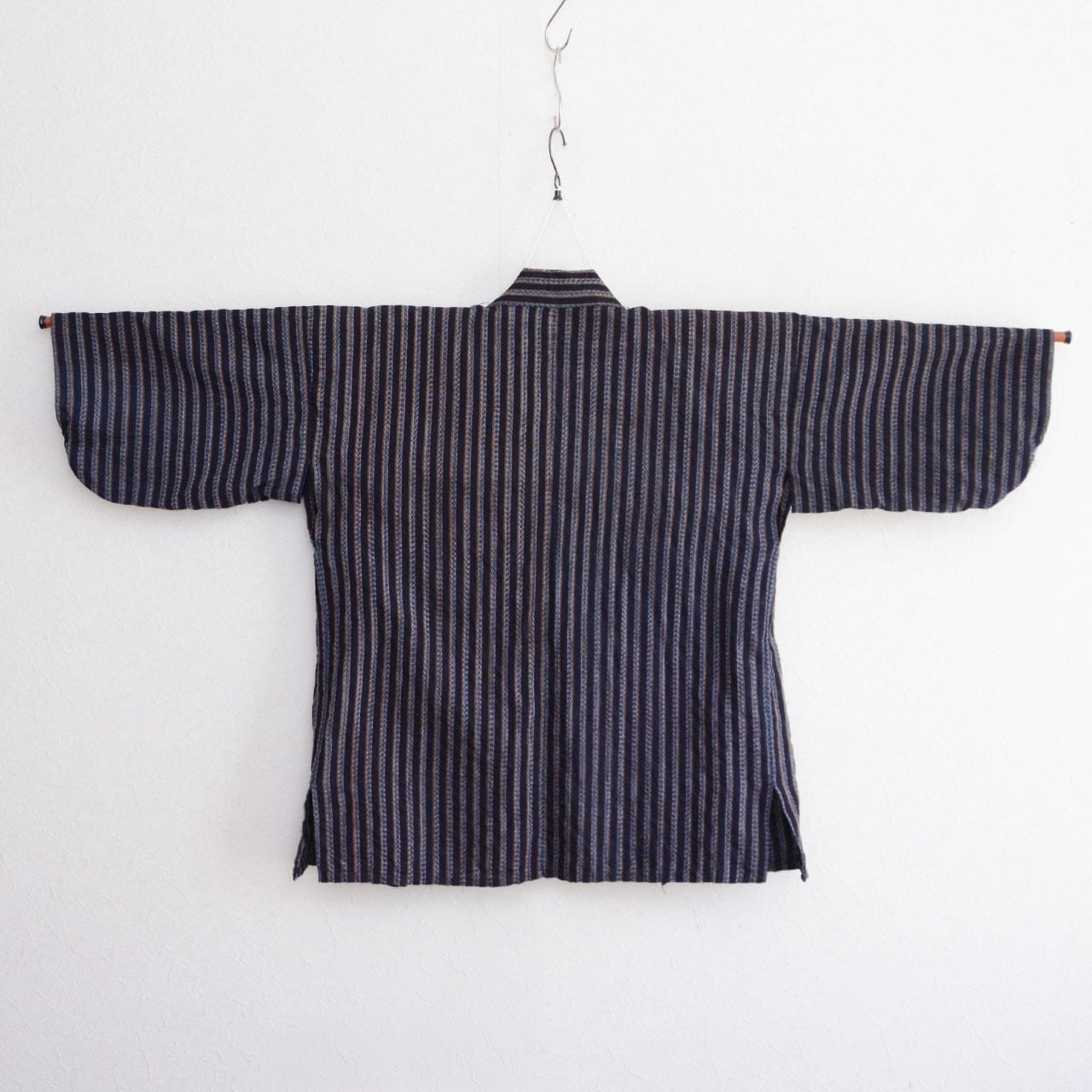 野良着 ジャケット 昭和中期 ジャパンヴィンテージ|藍染 縞 木綿|絣 羽織紐|古布 ハンドメイド・リメイク素材
