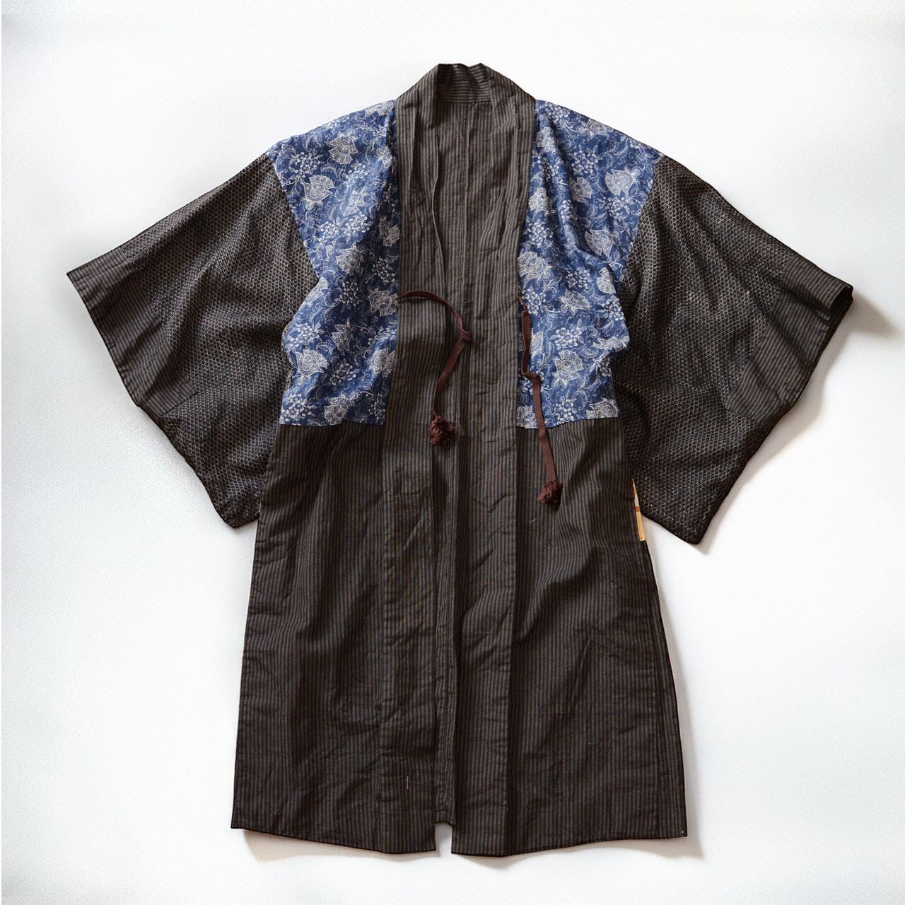 その中でも、クレイジーパターンの羽織は極めて希少です。農村の必然が生んだ「意図せざるデザイン」は、世界中のクリエイターとコレクターが求める、再現不可能な一点物の証明でもあります。