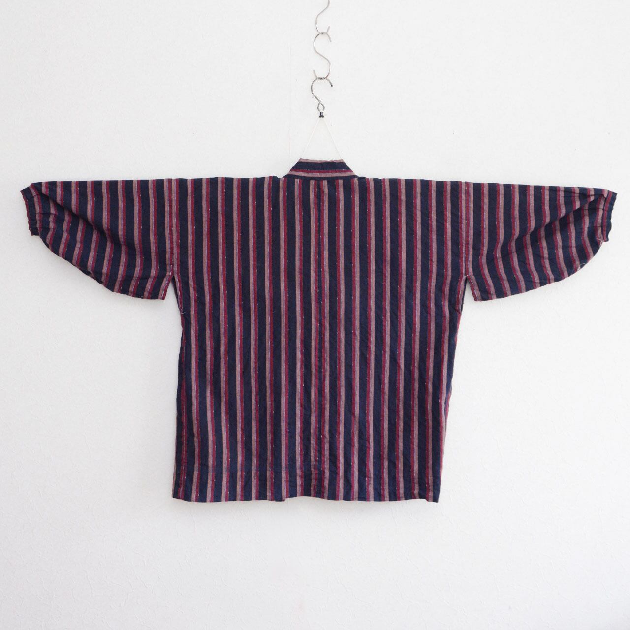 野良着 藍染 縞模様 木綿 手縫い 昭和初期 東北 ジャパンヴィンテージ 羽織|ハンドメイド・リメイク素材