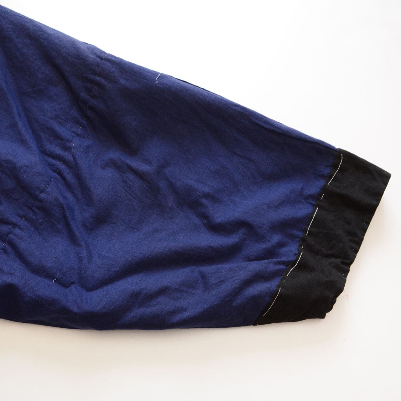 縫製は手縫い。均一ではない運針やわずかな揺らぎから、日常の中で作られ、使われてきた背景が伝わってきます。