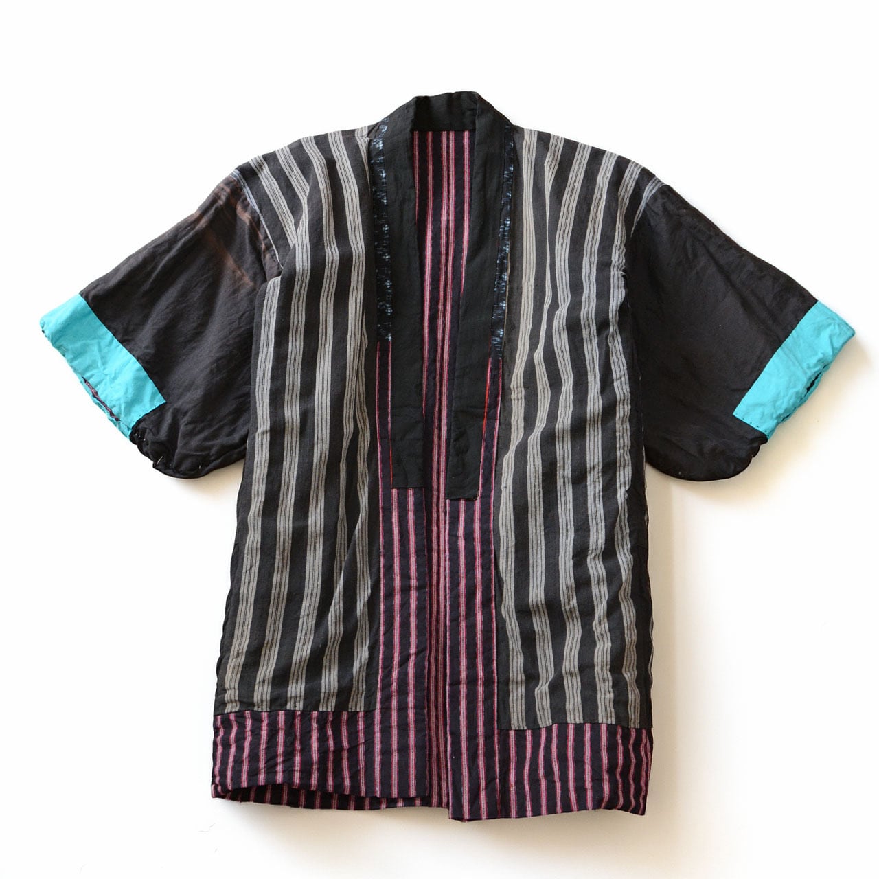 野良着 昭和中期 木綿|クレイジーパターン裏地・藍染絣襟・つぎはぎリペア|ジャパンヴィンテージ / スローファッション・ハンドメイド・リメイク素材