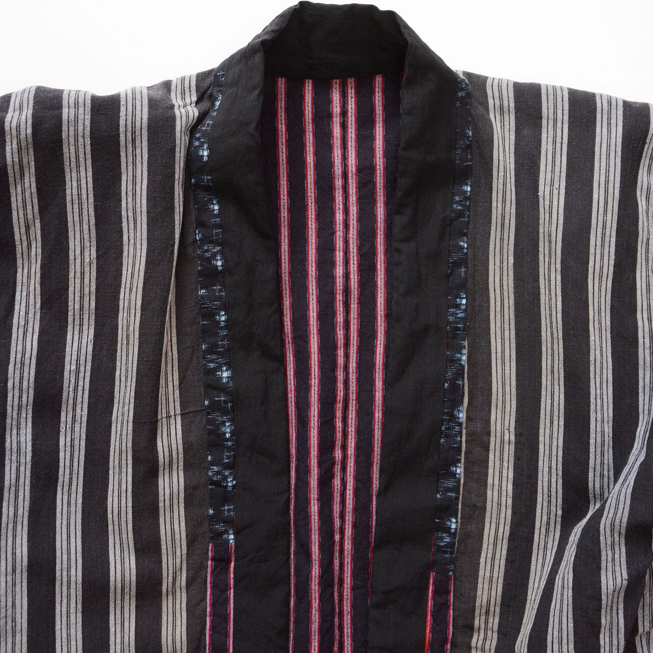 裏面は袖と身頃で、生地が違います。それは欠点ではありません。昭和中期の農村では、布は貴重でした。あるものを組み合わせ、丁寧に仕立てる。その結果として生まれた、意図せざる構成美がここにあります。