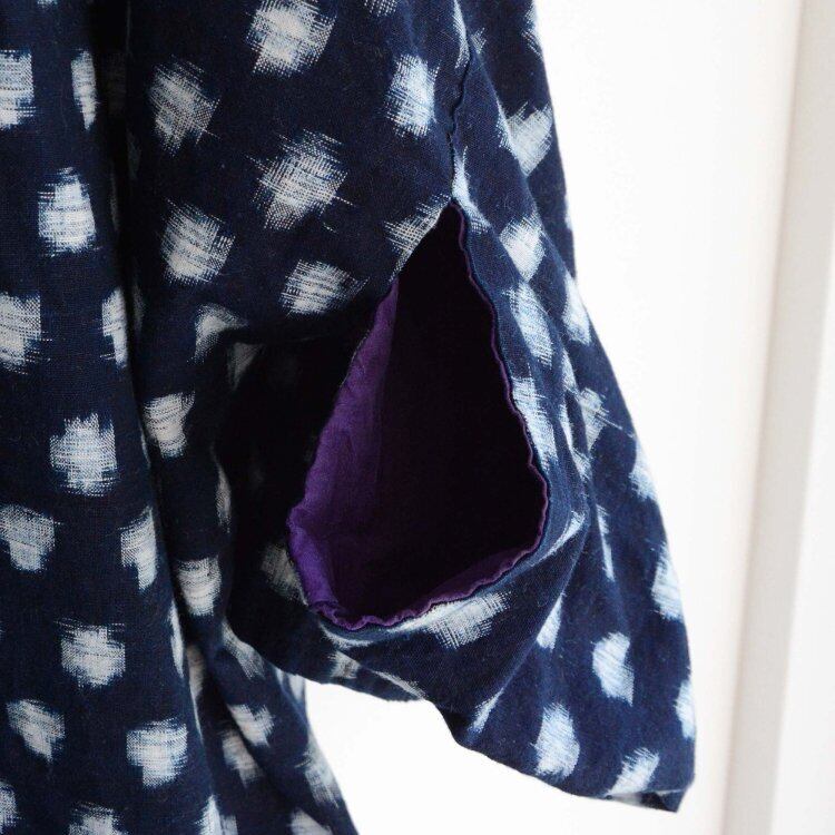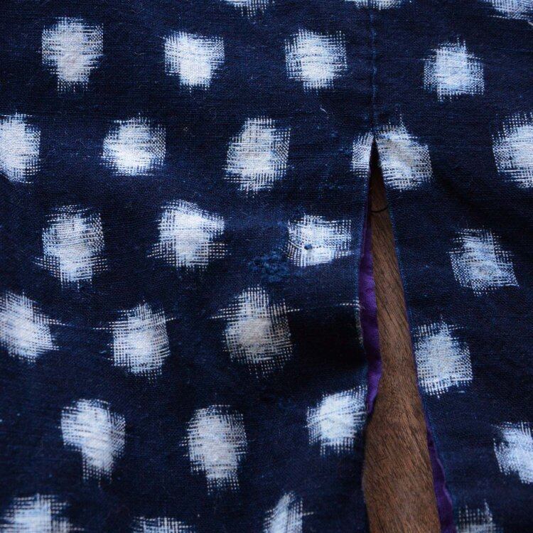It will be a Japanese vintage indigo dyed Kasuri noragi from the early to mid-Showa period.