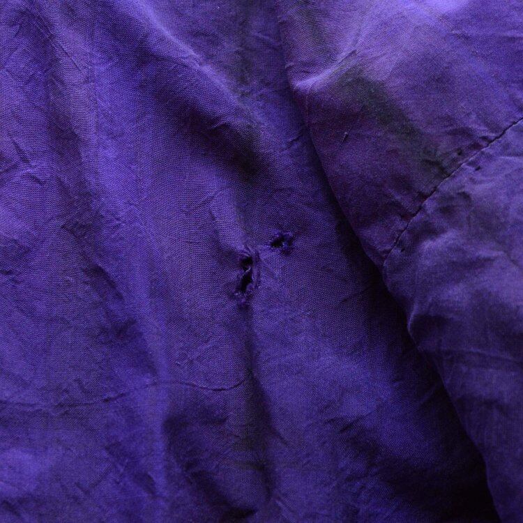 裏面に破れあり、おそらく生地が弱っており、洗濯や着用により、ダメージが生じると思われます。