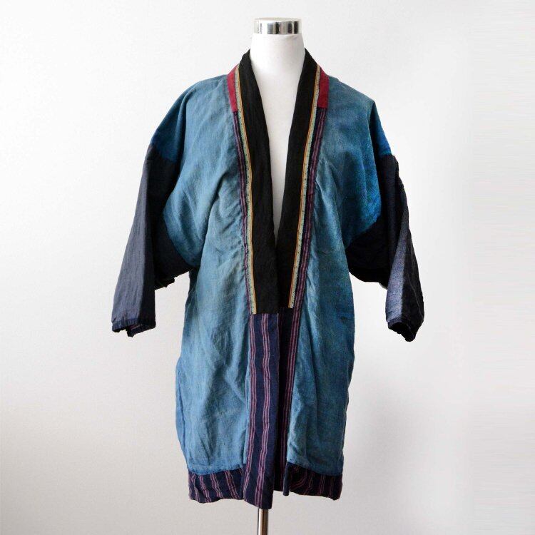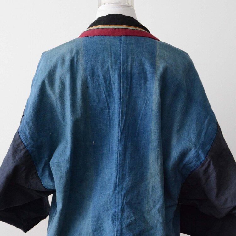 The back side has a crazy pattern, and the contrast between the indigo dyed body and sleeves is wonderful.